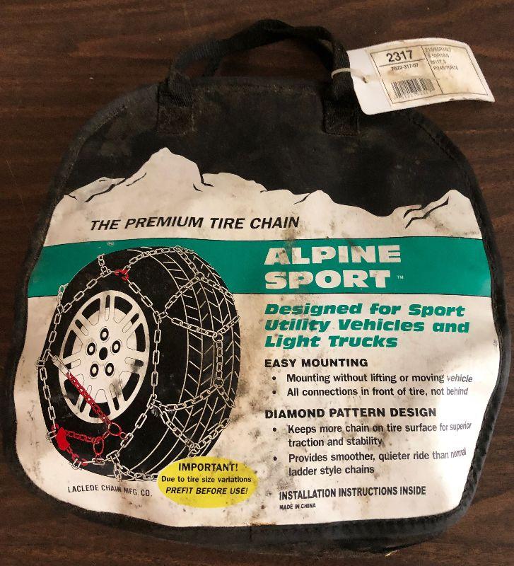 Here are a set of #2317 premium tire chains...good condition...designed for Sport Utility Vehicles and Light Trucks...easy mounting...from Alpine Sport...