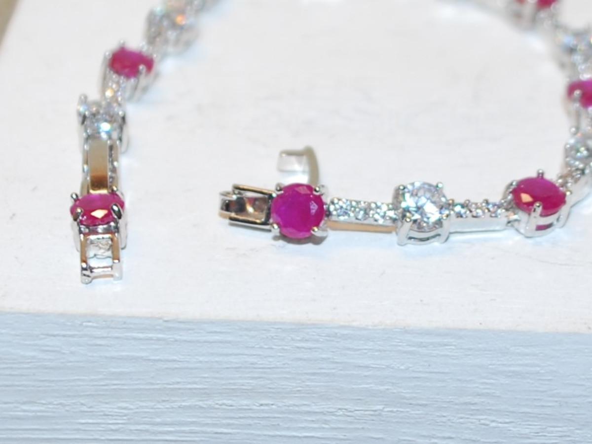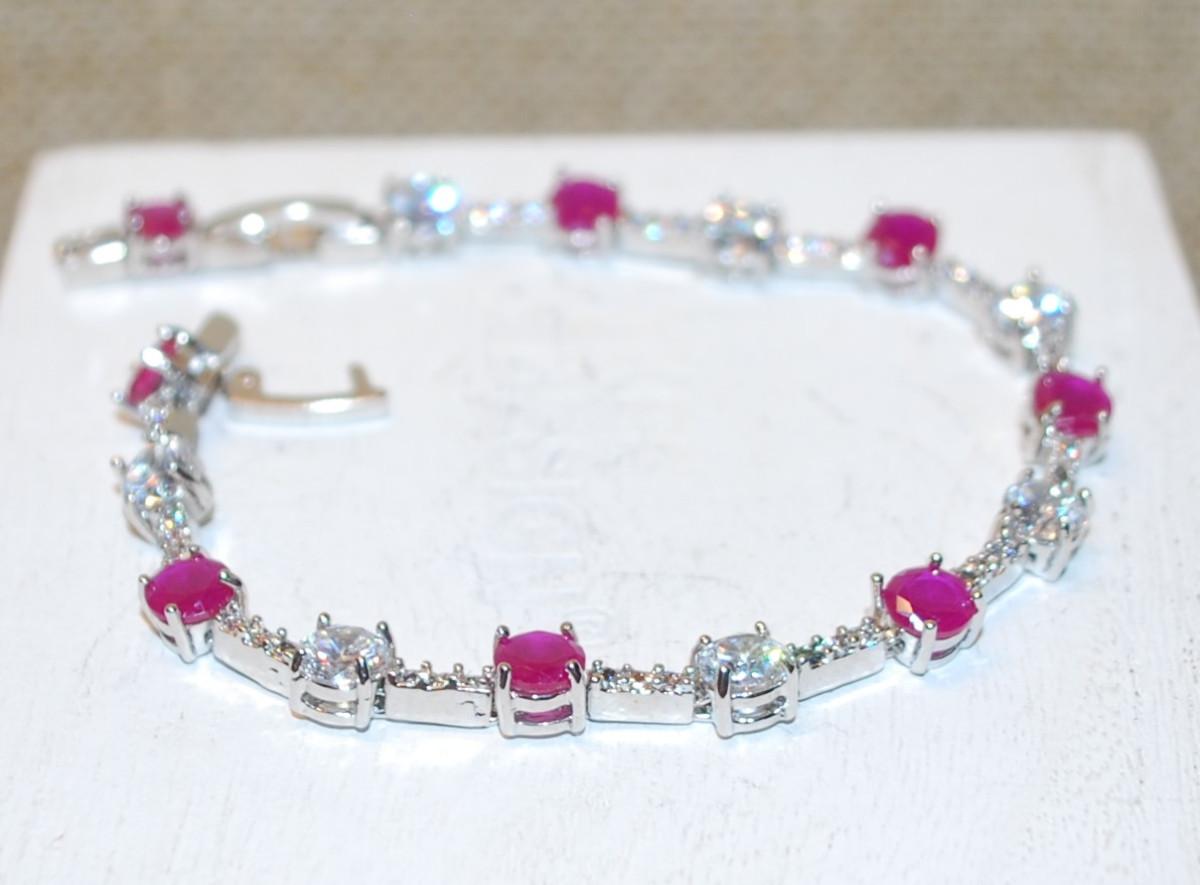 Alternating Magenta & Clear Stones BRACELET (7" End-to-End) with a Box Clasp