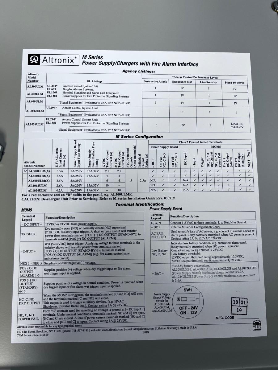 ALTRONIX M Series Power Supply Box with Circuit Boards