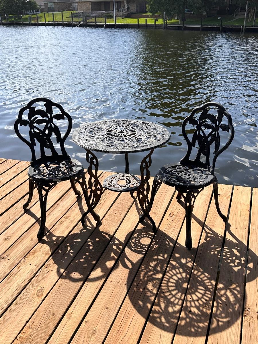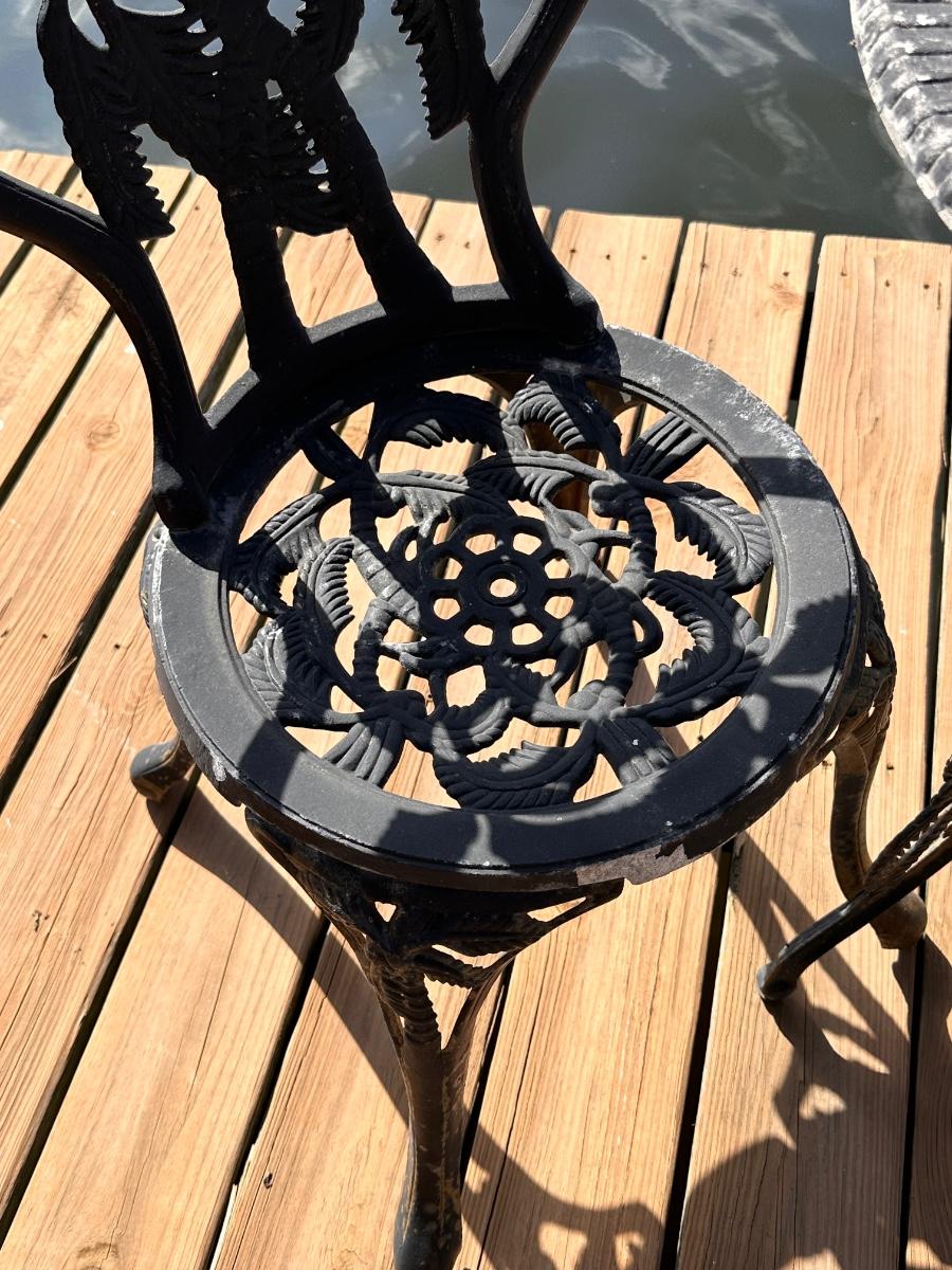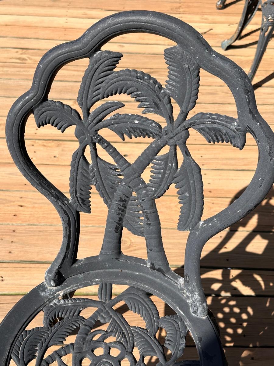 Black Palm Tree Motif Cast Aluminum 3 Piece Bistro Set