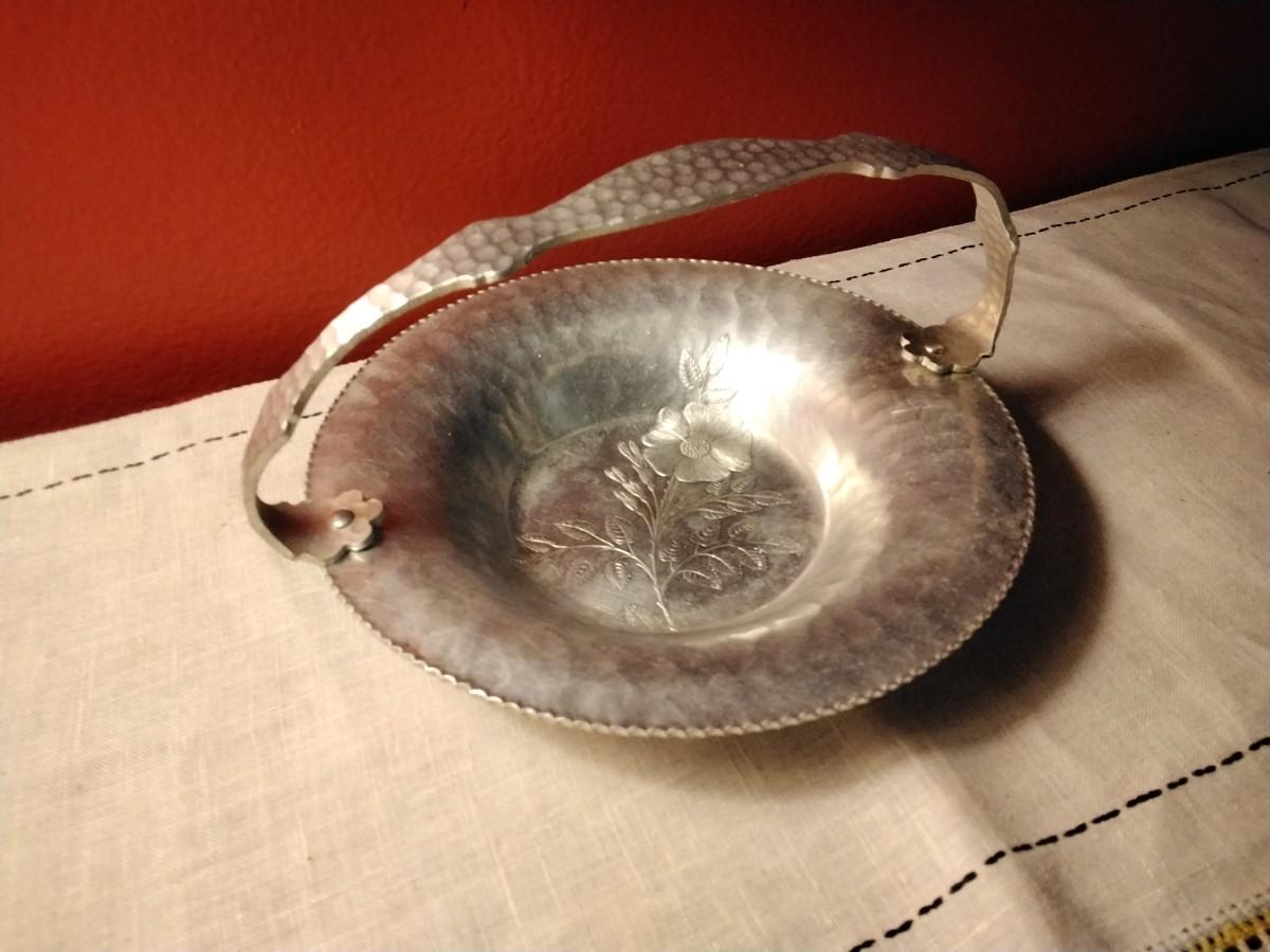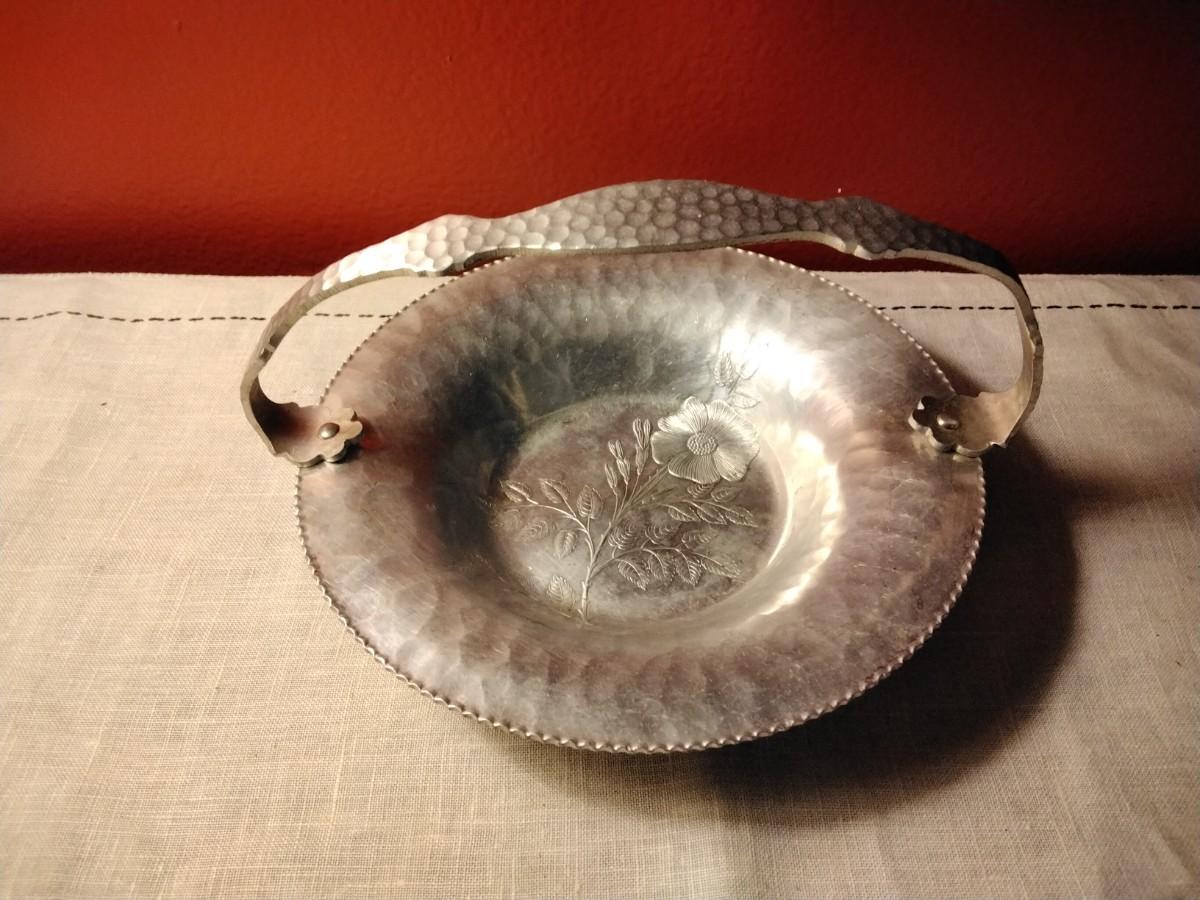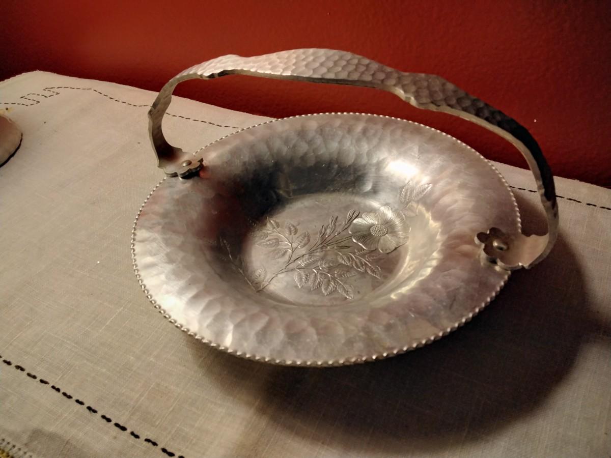 Vintage Continental Silver Co Brilliantone Wild Rose 1088 Aluminum Basket 8"
