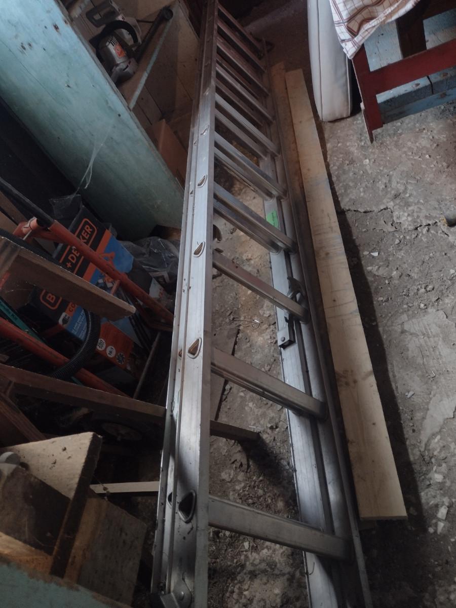 Aluminum Extension Ladder- 17 Feet. Label is worn, but appears to say 200 lb capacity. Other items in picture not included- ladder only.