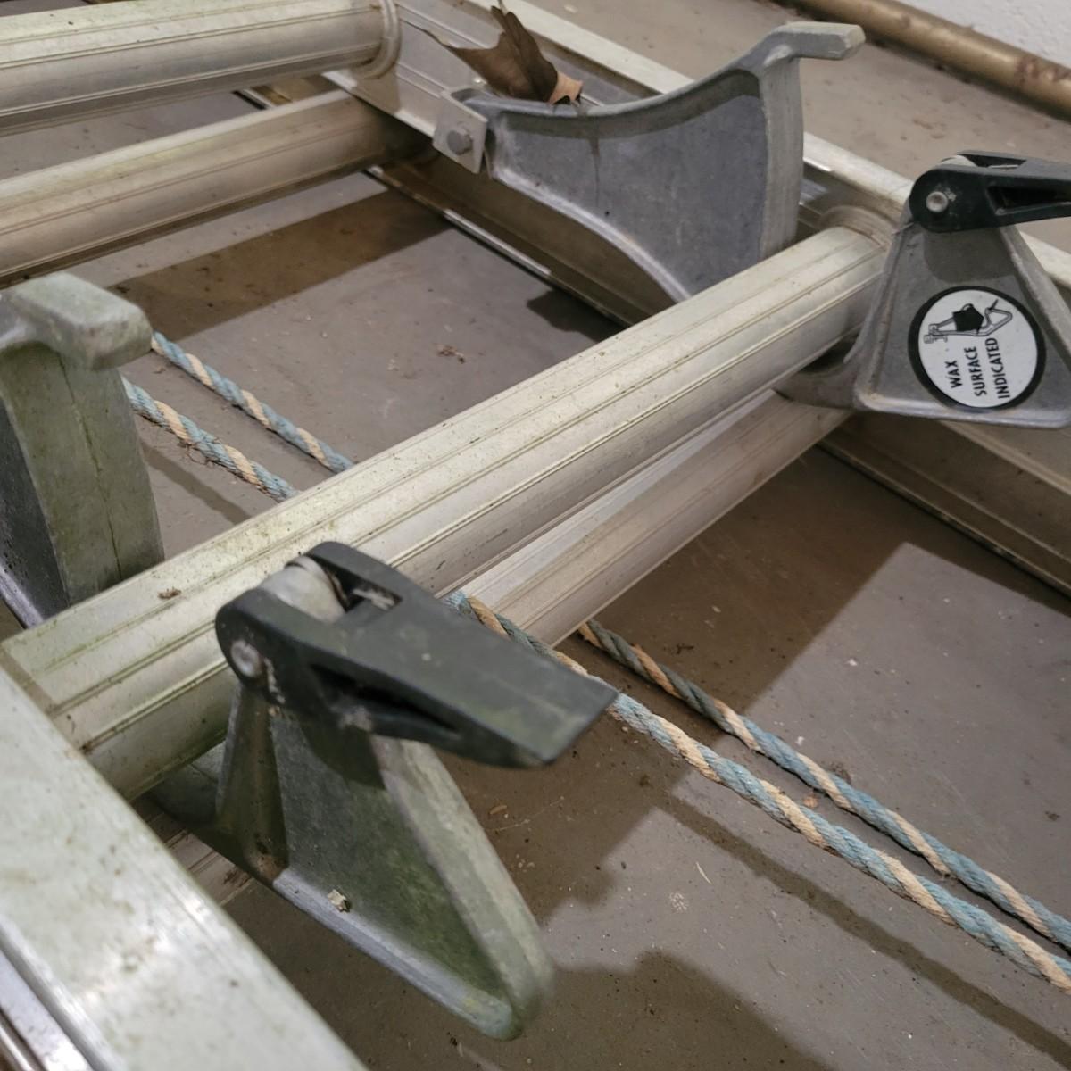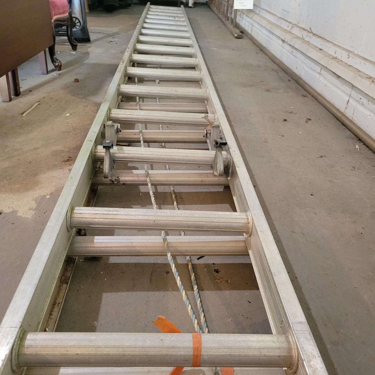 An aluminum extension ladder in good condition, but it does need to be re ran on its internal track as the two pieces are currently separated. Ladder has no major dents or bent peices. Each section measures approximately 192" x 17.5" x 3" Local pickup only