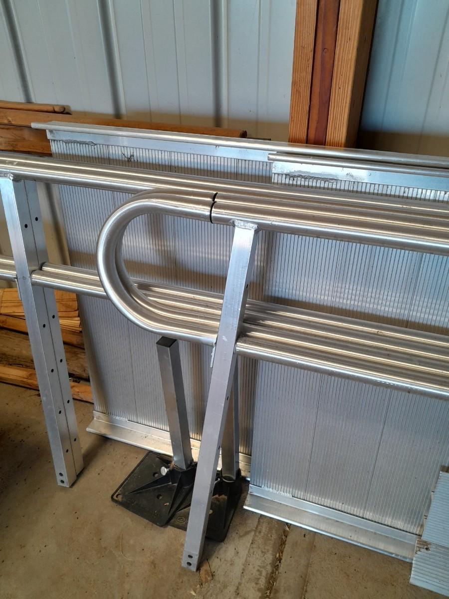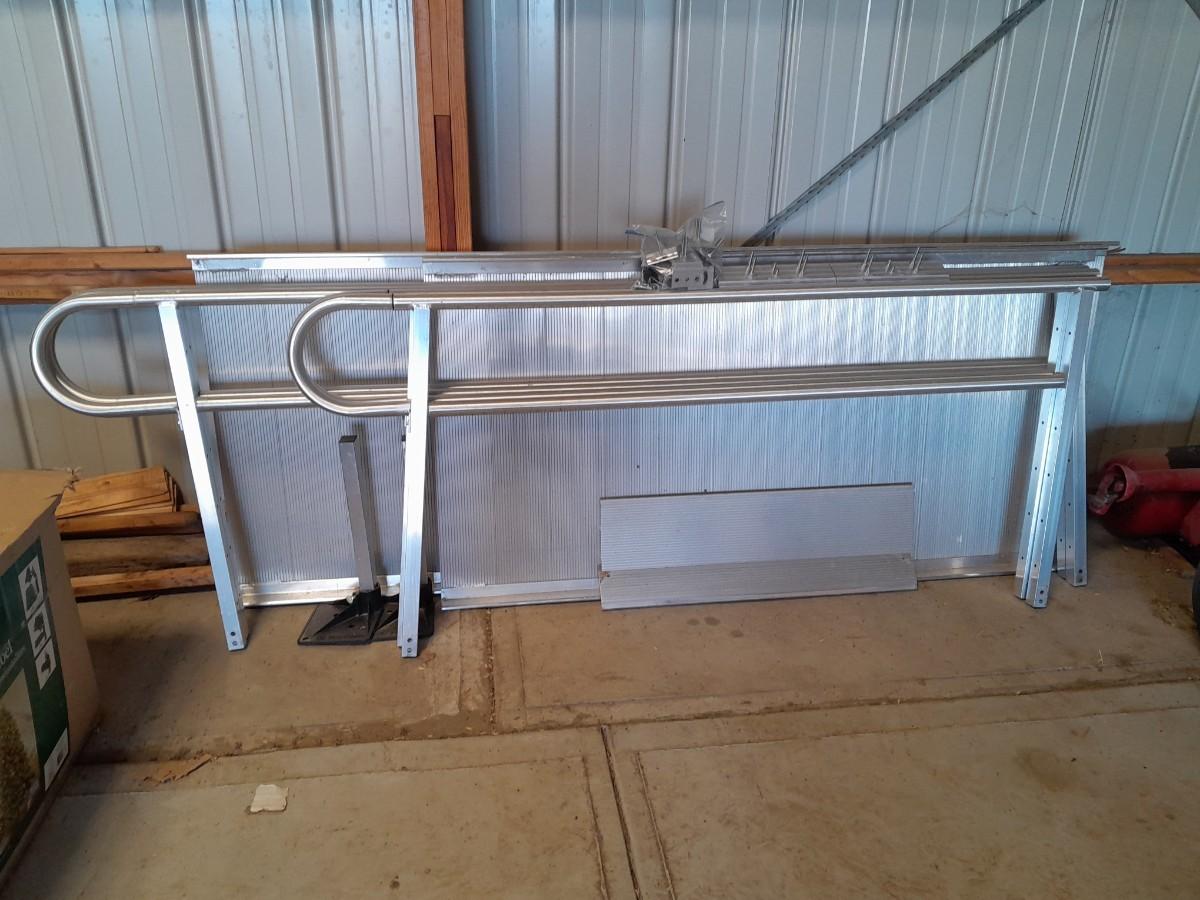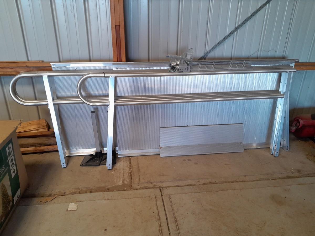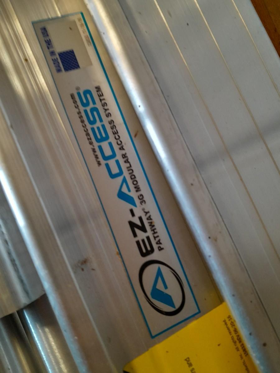 ALUMINUM EZ-ACCESS PATHWAY 3G MODULAR ACCESS SYSTEM WHEELCHAIR RAMP WITH RAILS AND HARDWARE ONE 8' SECTION, ONE 72" SECTION, AND ONE 35" SECTION. EACH SECTION IS 3' WIDE.