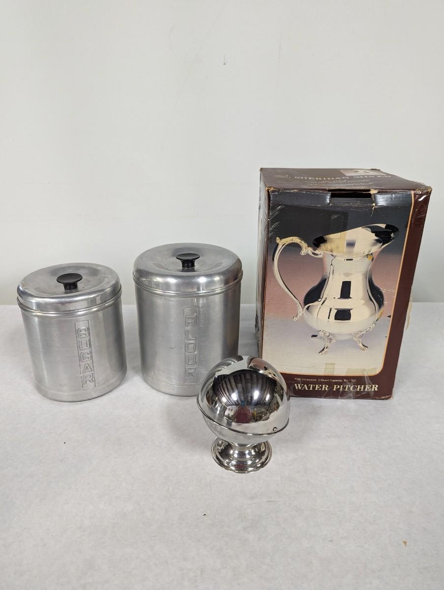 Aluminum Flour & Sugar Containers Silver Plated Water Pitcher