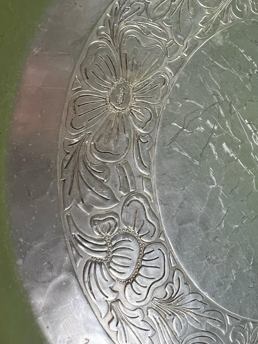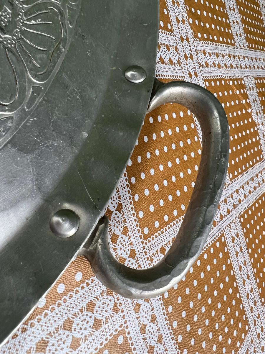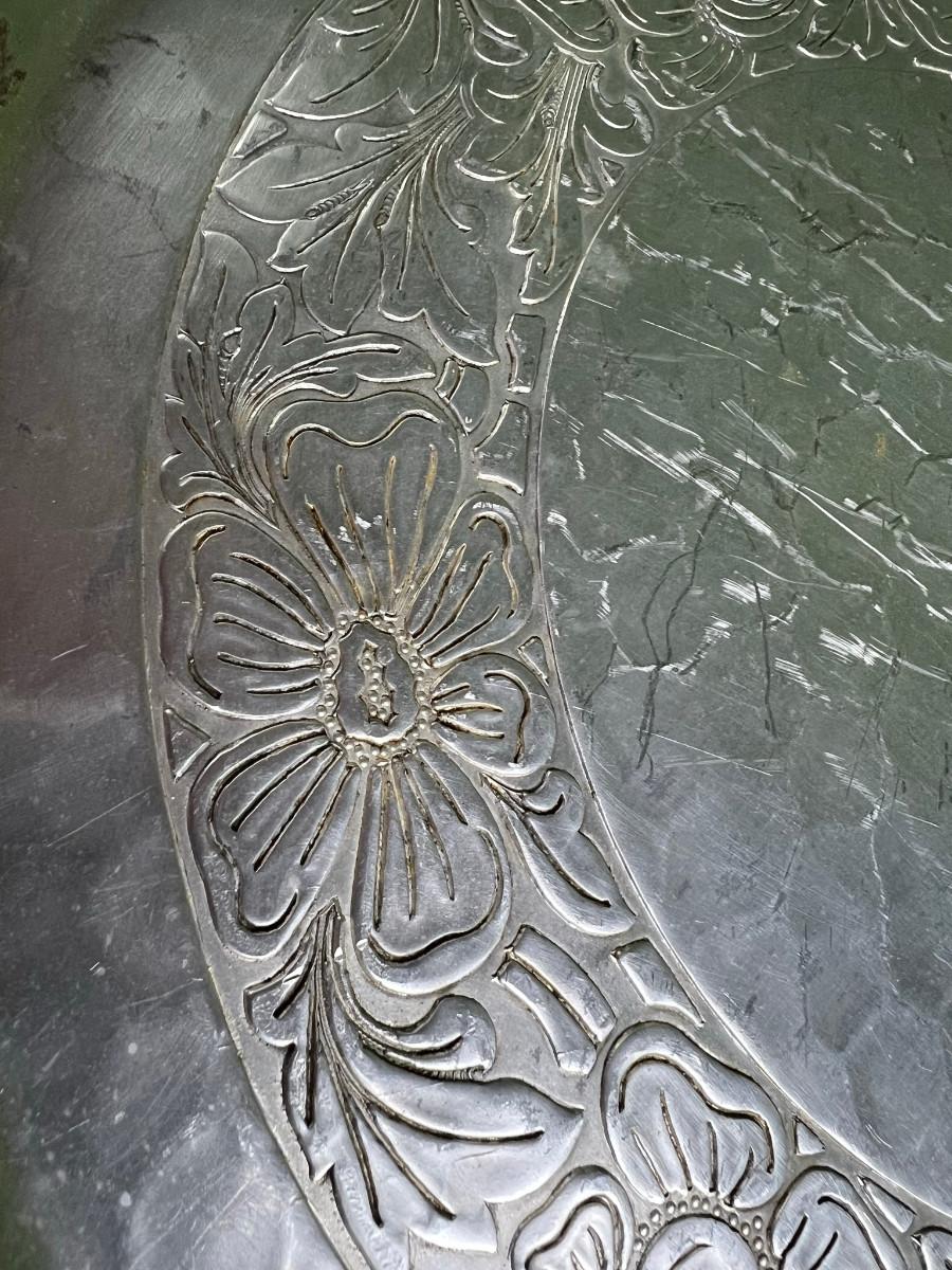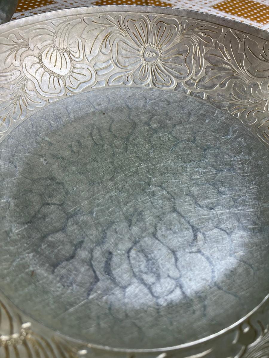 Aluminum platter 17.5" diameter and bowl 2.5" x 10 1/4" forged aluminum Intaglio design by EMP co.