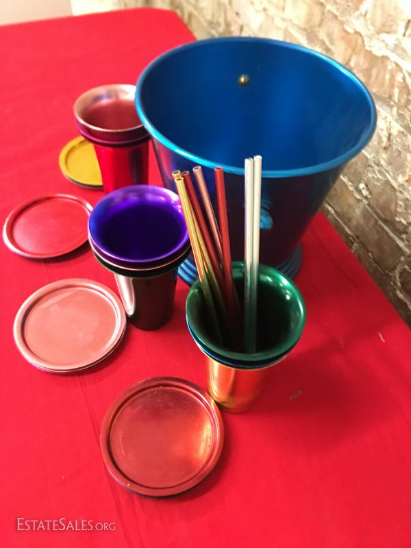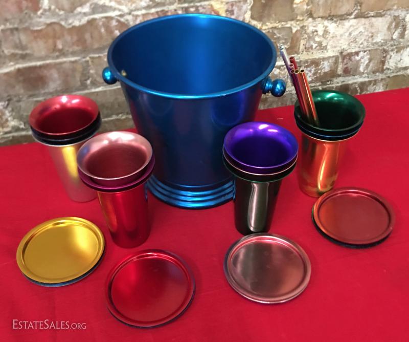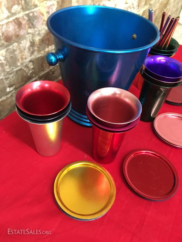 Aluminum Outdoor Set Ice Bucket, Tumblers, Straws, Coasters..