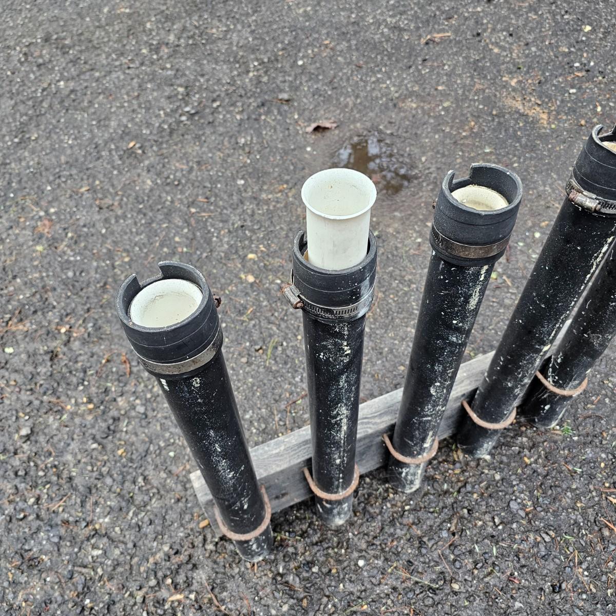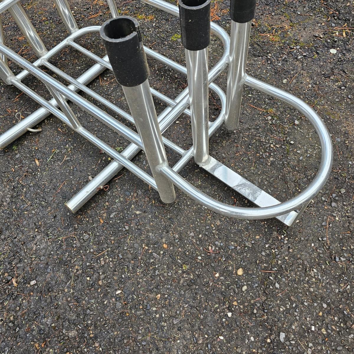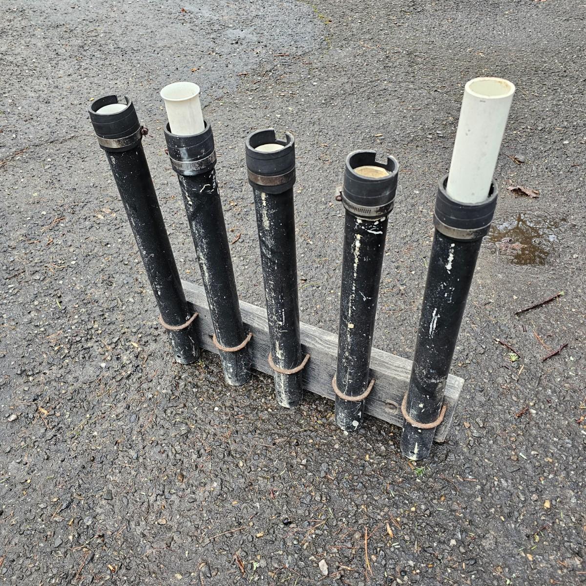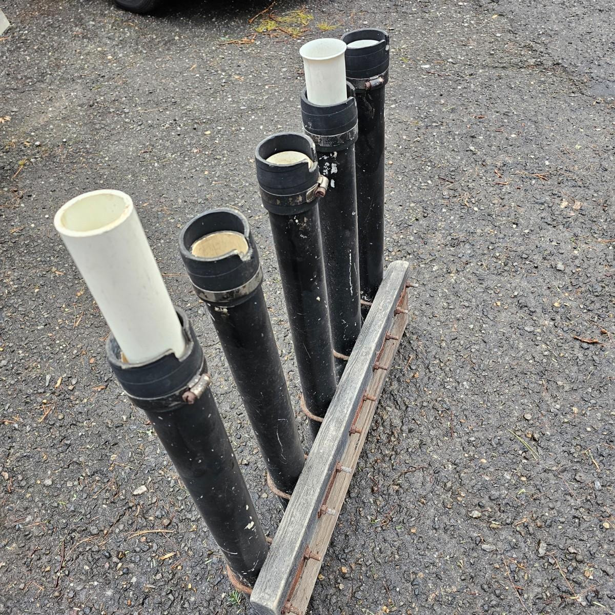 One welded aluminum rod holder that mounts onto mount on vehicle, most likely used for surf fishing. Holder has places for seven rods, a cooler and a bait bucket. Tubing diameter is approximately 1.75" for the rod openings, and 1.625" for the mounting tubes. No mounting bracket included. Unit measures 51" x 27" x 25"H, cooler opening is 16" x 30" and bait bucket area is 12"D. Also included is a homemade rod holder mounted to wood board, will hold five rods. Measures 26" x 30". See photos for details. Local pickup only.