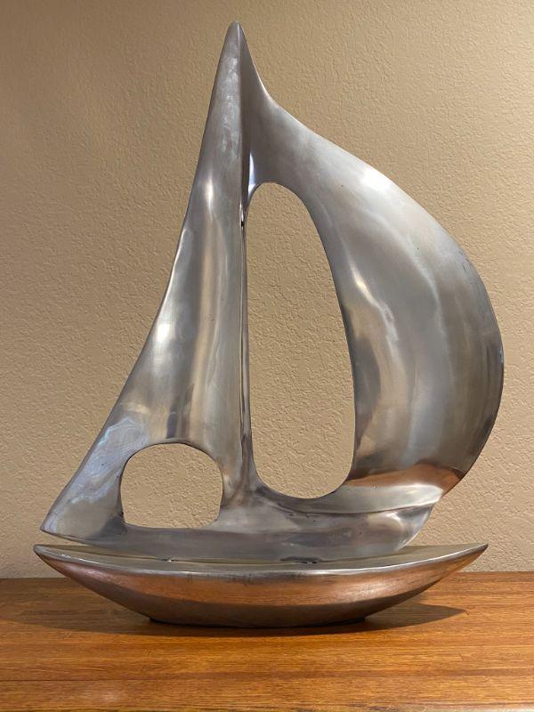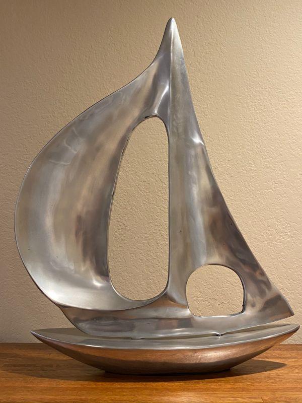 Aluminum Sail Boat Sculpture / Statue Unsigned, Mid-Century Modern, Sleek!