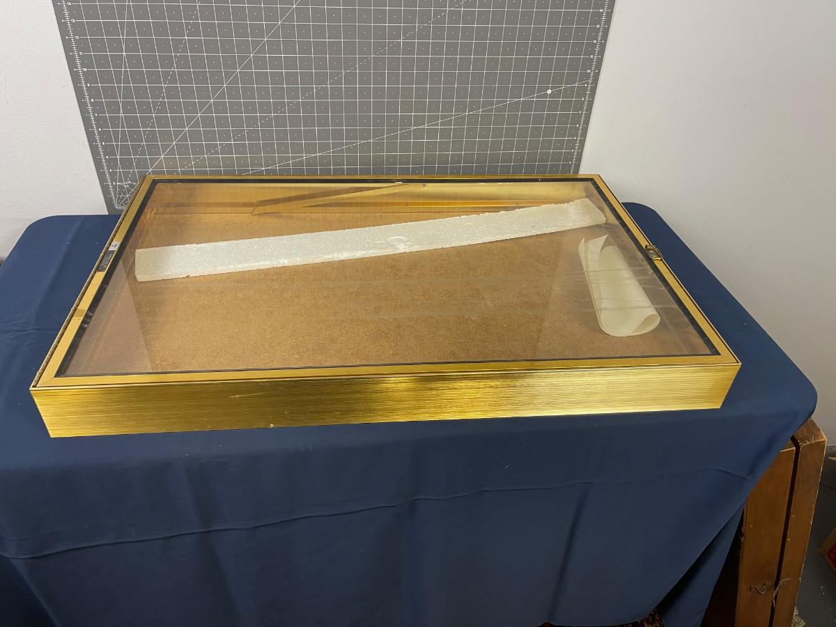 In Like New Condition. NO COMBO FOR THE LOCK 24 x 22 x 3-1/2 LOCK NEEDS TO BE DRILLED OUT
