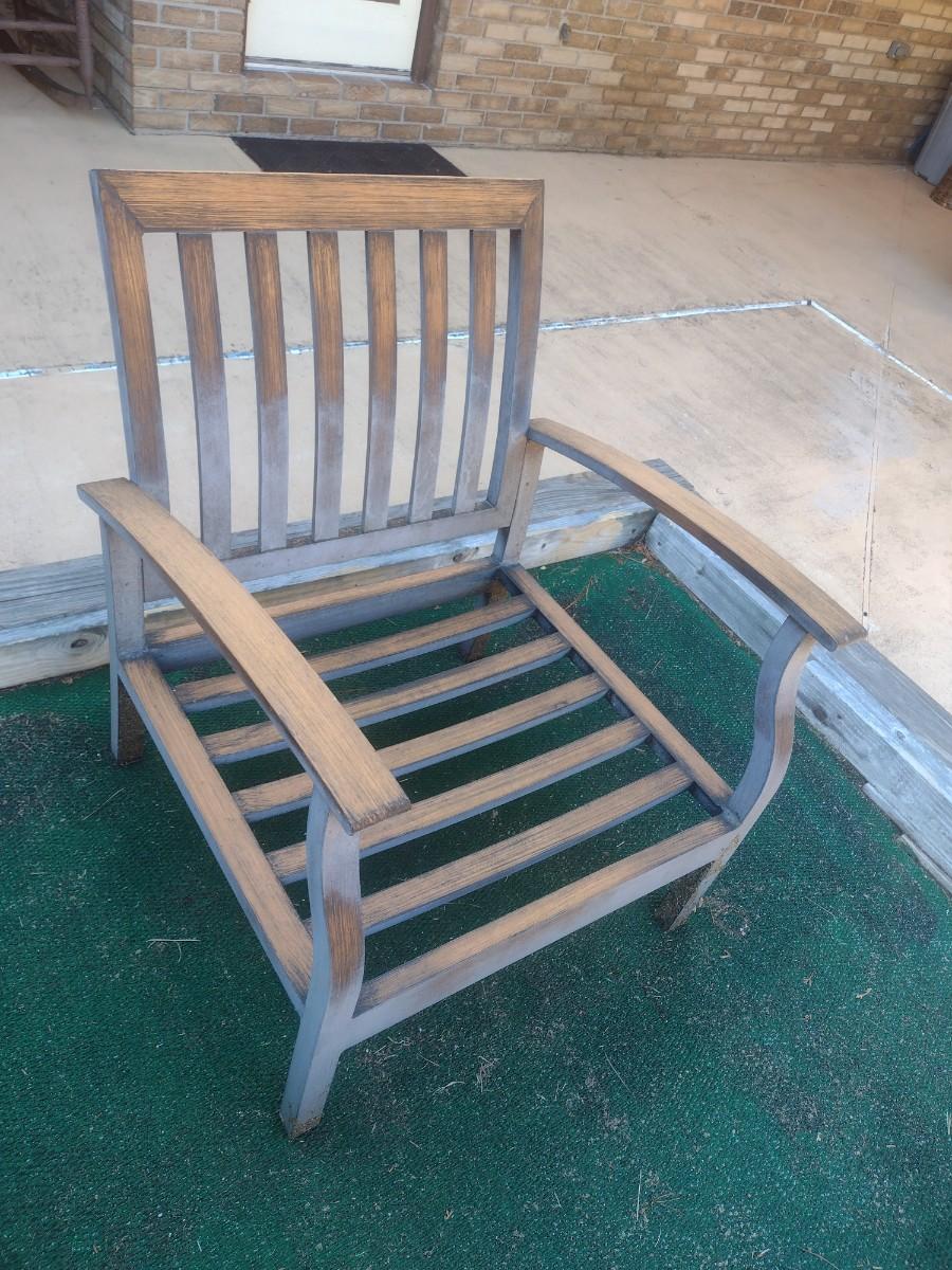 Aluminum Slat Faux Wood Grain Finish Garden Sitting Chair Choice A