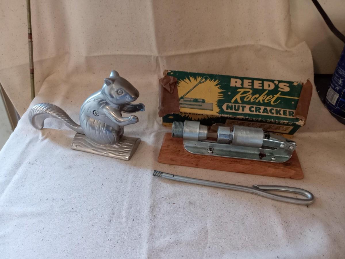 ALUMINUM SQUIRREL NUT CRACKER AND REED'S ROCKET NUT CRACKER