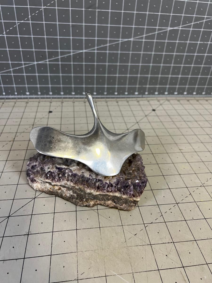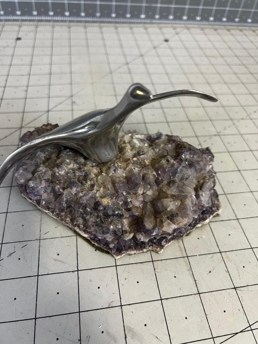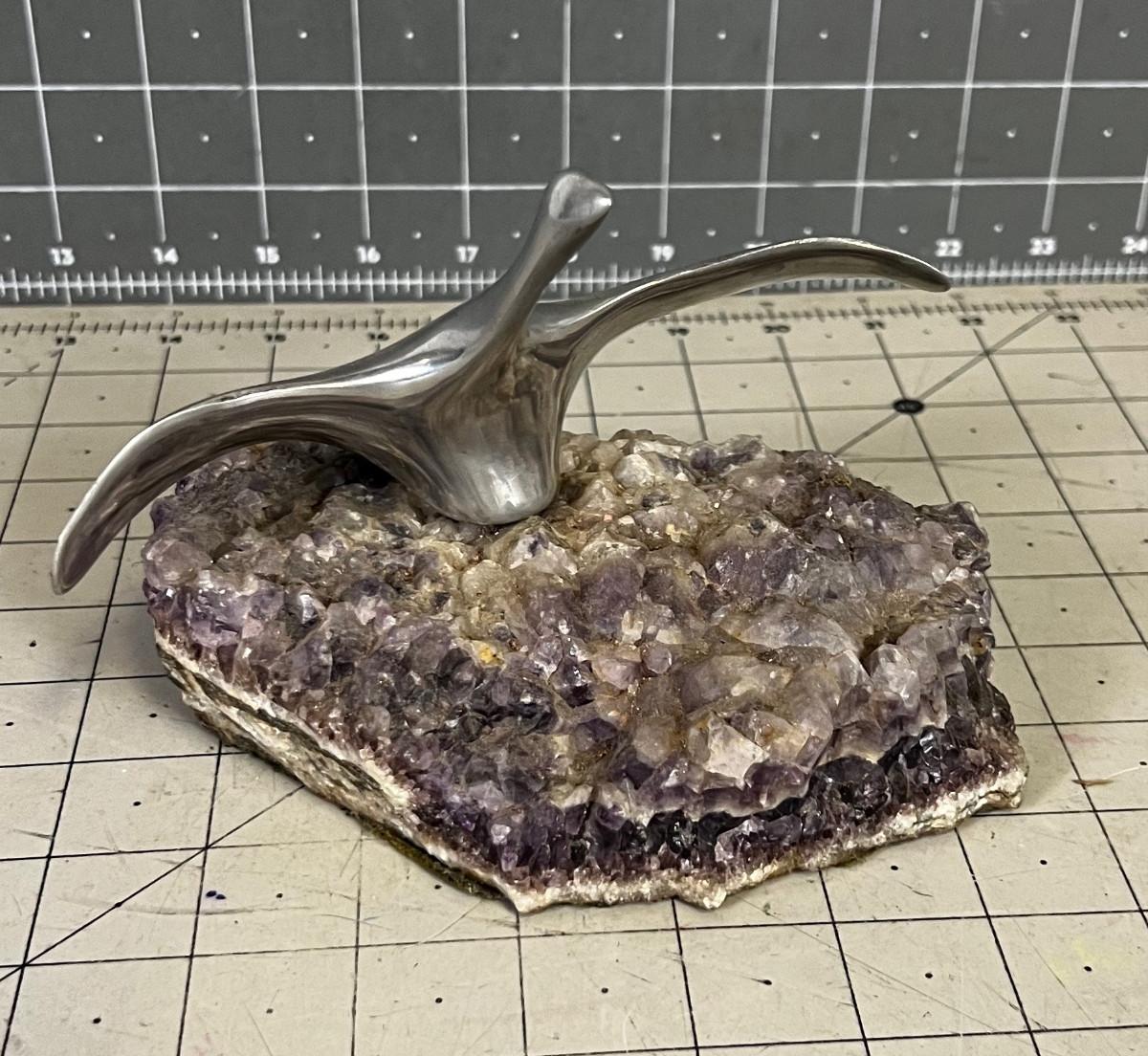 Aluminum Swan Sculpture on Amethyst Crystal Base