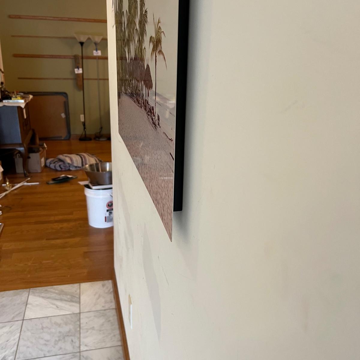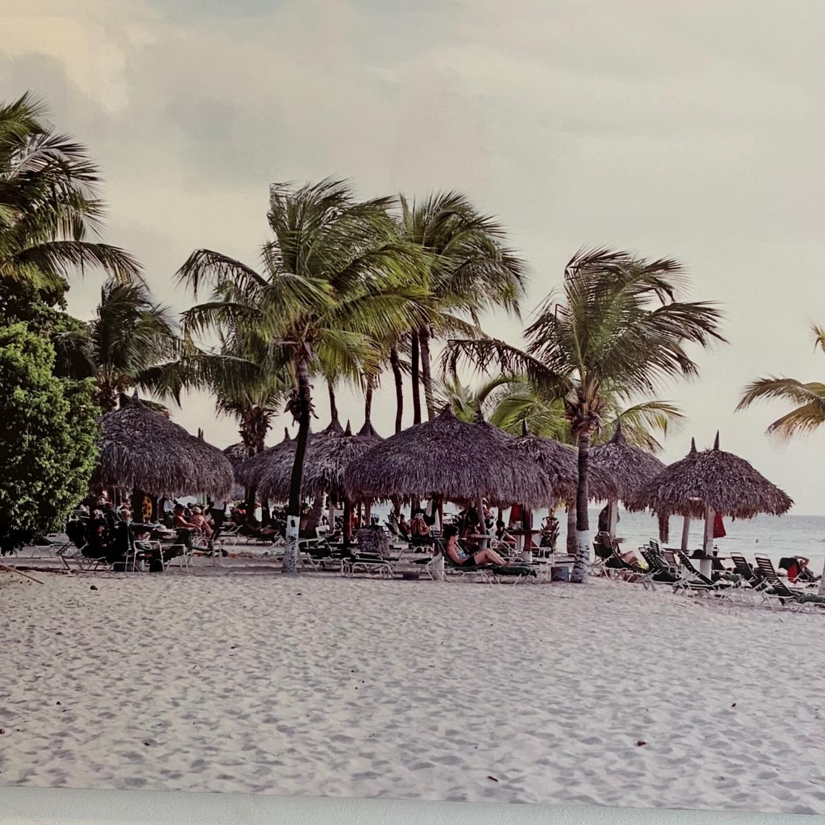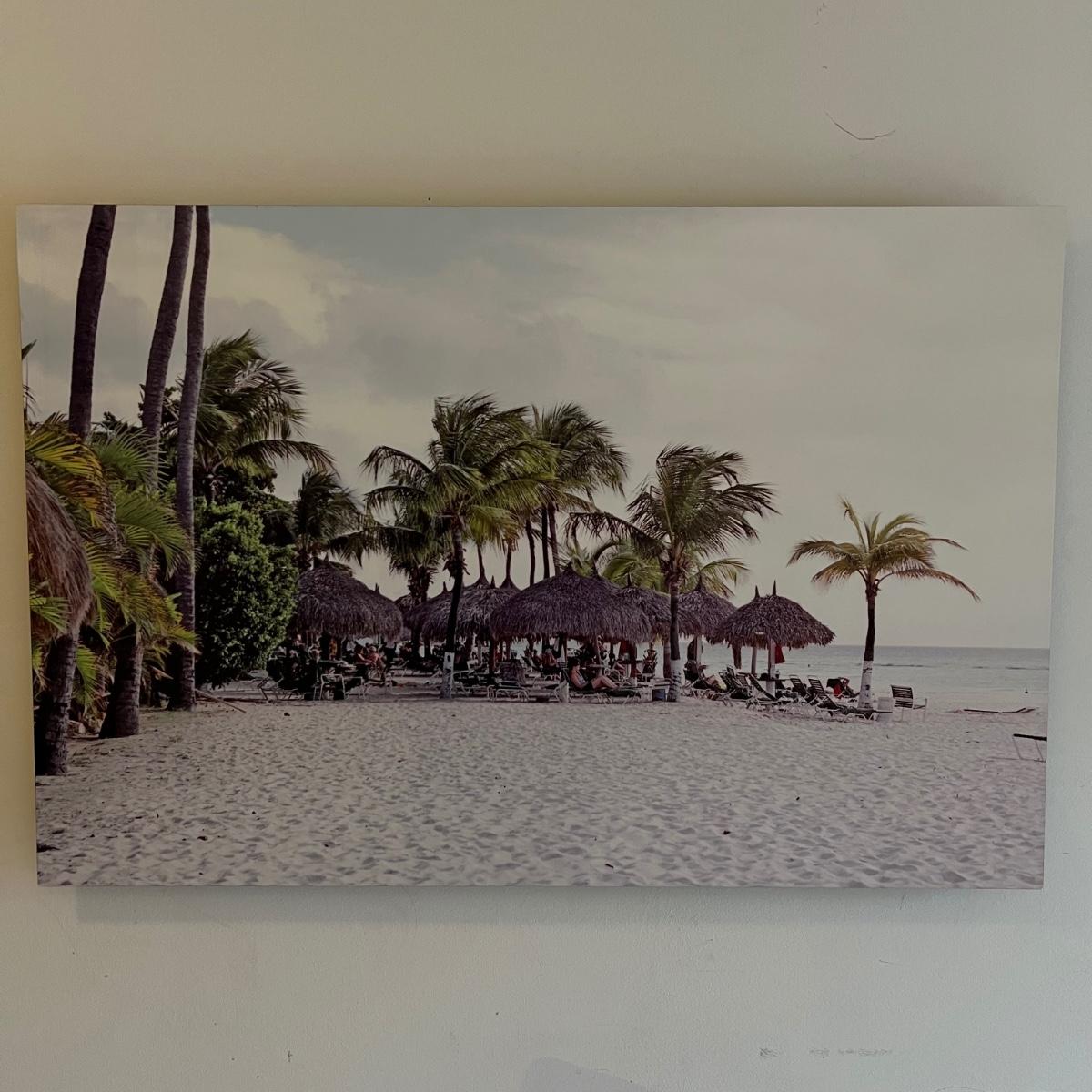 This beach scene is a photograph printed on aluminum. It's a nice large print that makes you feel like you are on the beach.