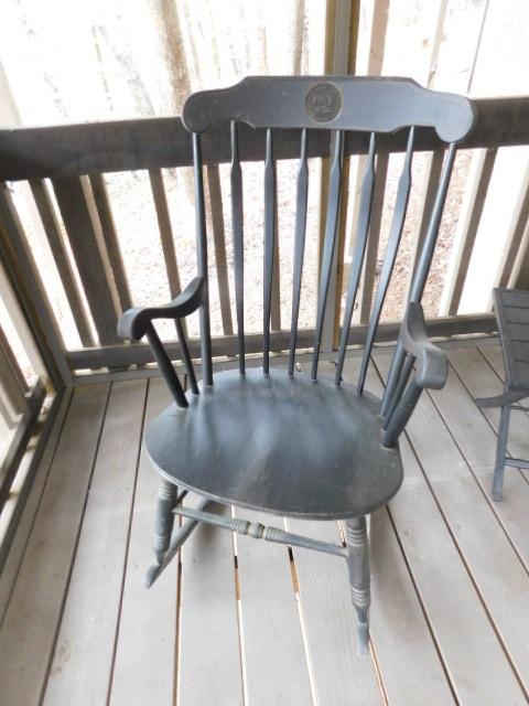 Alumni Rocking Chair University of Memphis has fading paint and some wear.
