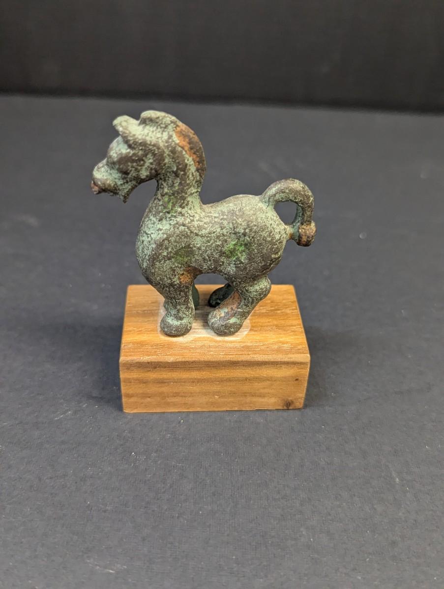 Alva Studios Bronze Reproduction Of Chinese Horse On Wooden Base Art Institute Chicago
