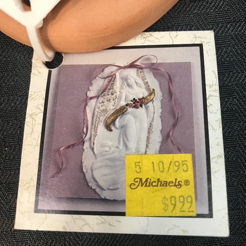Brand new; still has its original retail tags, and a 1995 price tag from Michael’s° marked $9.99. Adjusted for inflation that’s over $17.05 today. Bidding starts at $1! Don’t miss this chance!