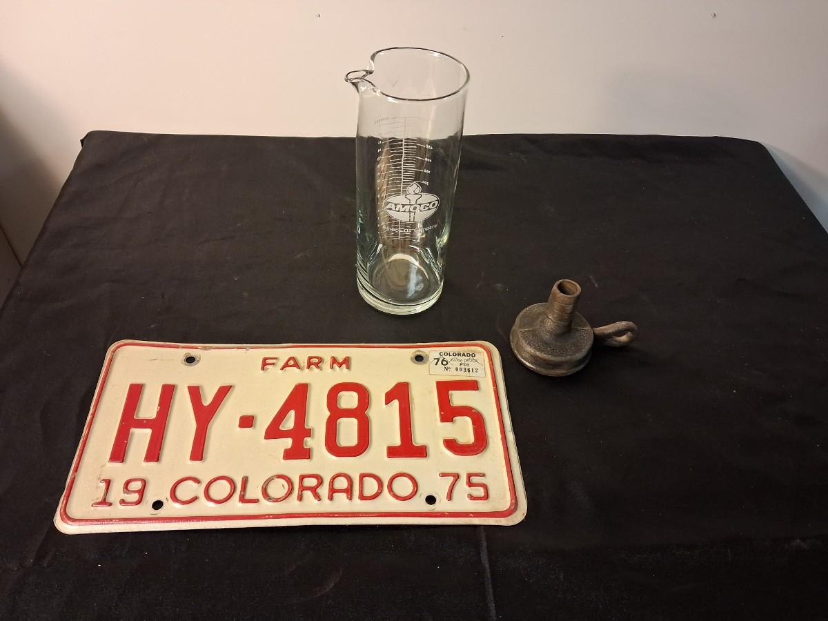 AMACO GLASS BEAKER, FARM PLATEE AND ??