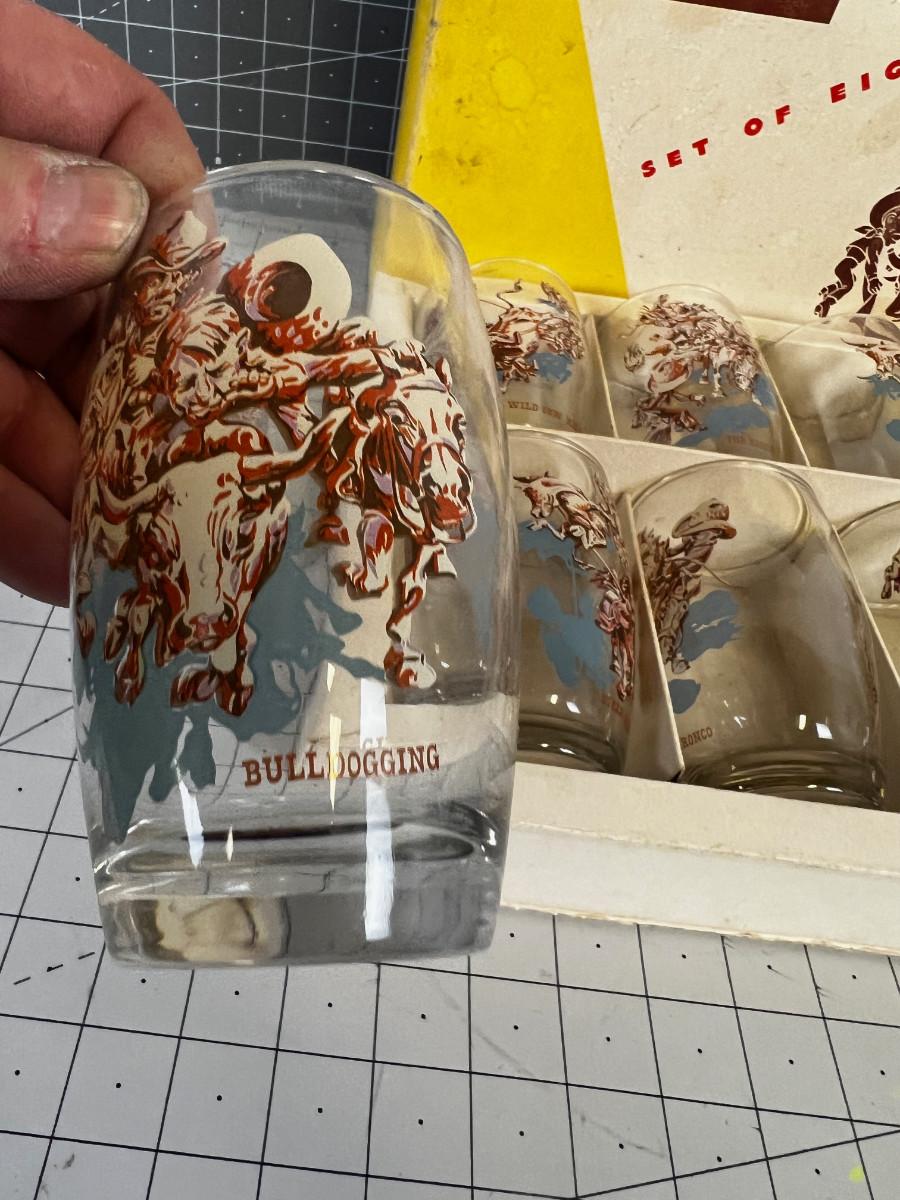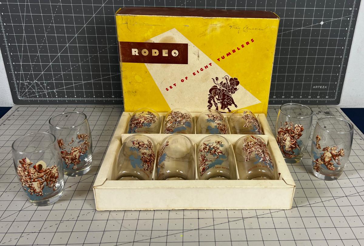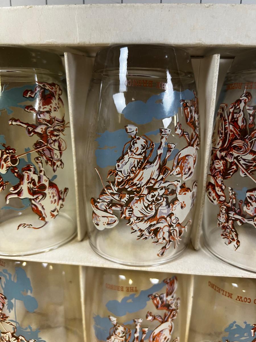 AMAZING!!! 8 Western RODEO TUMBLERS (Glasses) in the original box Plus 4