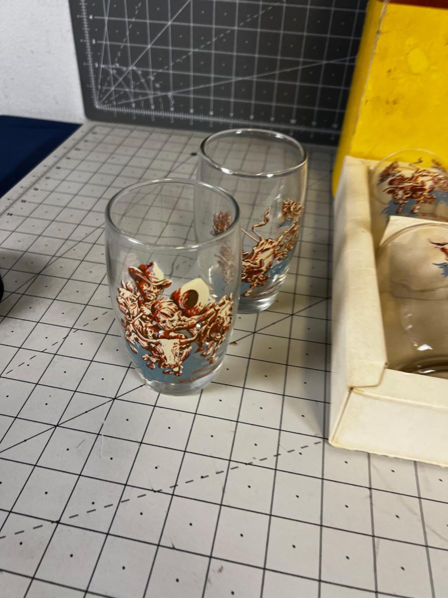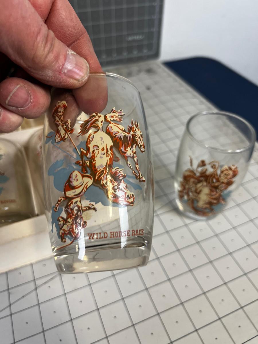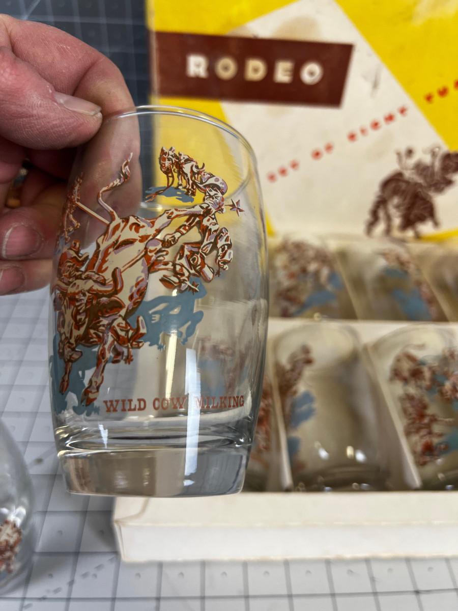 AMAZING!!! 8 Western RODEO TUMBLERS (Glasses) in the original box Plus 4