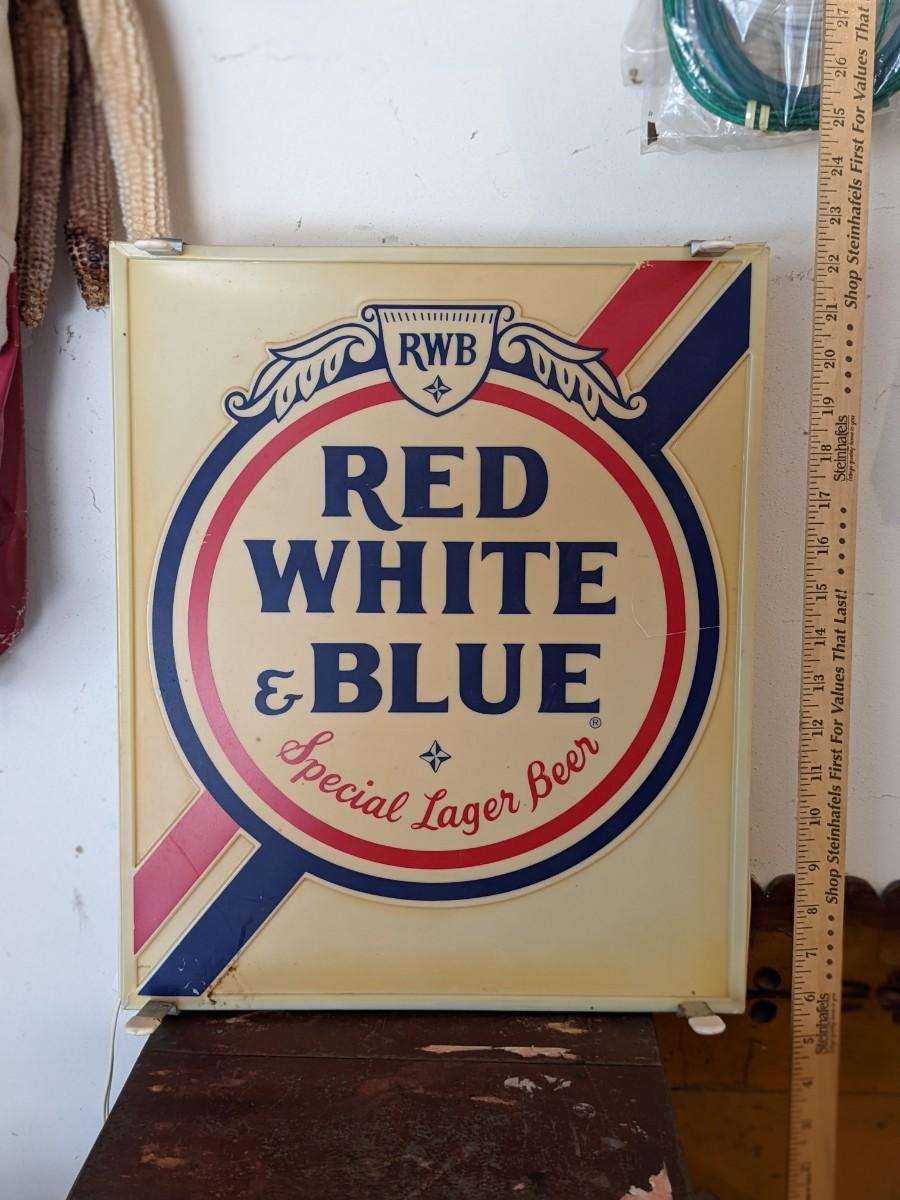 Amazing and Rare Red White & Blue Beer Lighted Sign