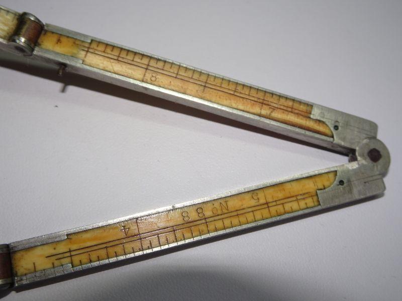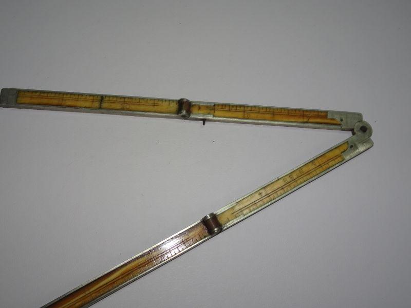 Amazing Antique 19th Century FOLDING RULE. Bone and silver metal Ruler 4 section Measure