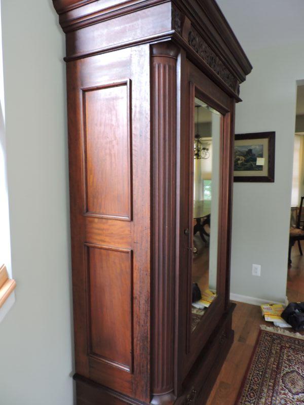Amazing Antique Break Down Wardrobe/Armoire. 53"x24"x92" **Please read Terms and Conditions before placing a bid. Pick up is Sunday, September 1, 2019 from 10am to 4pm in Williamstown. All sales are final. All sales are as is, where is. Please review all photos. Any props included in photos are not included in listing. All measurements are approximate. Comes from home with cats.