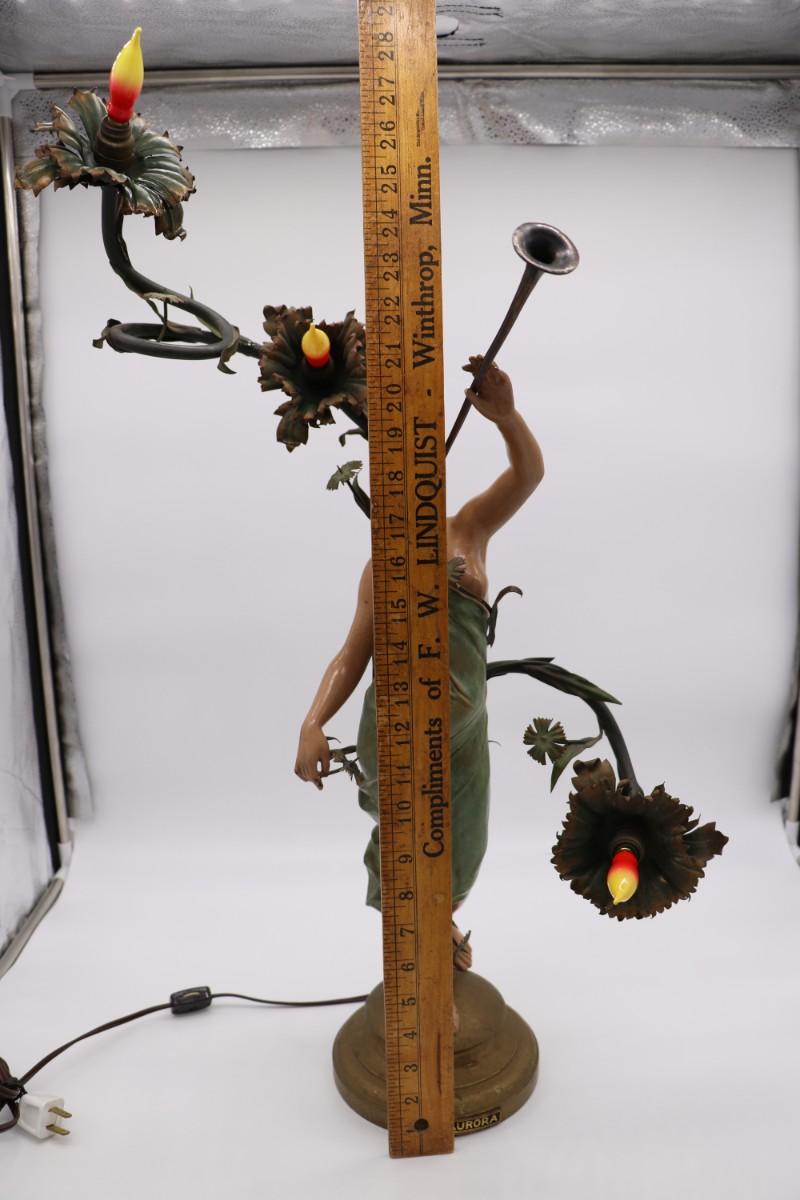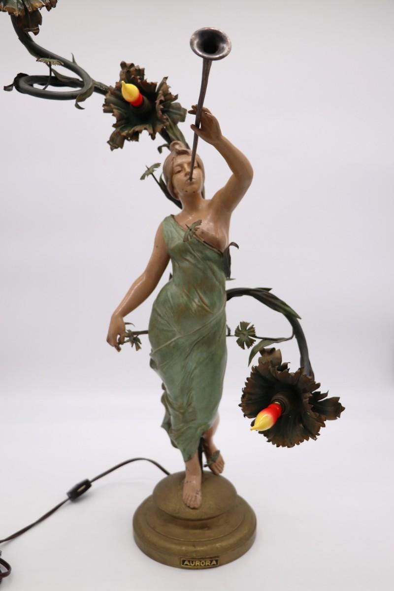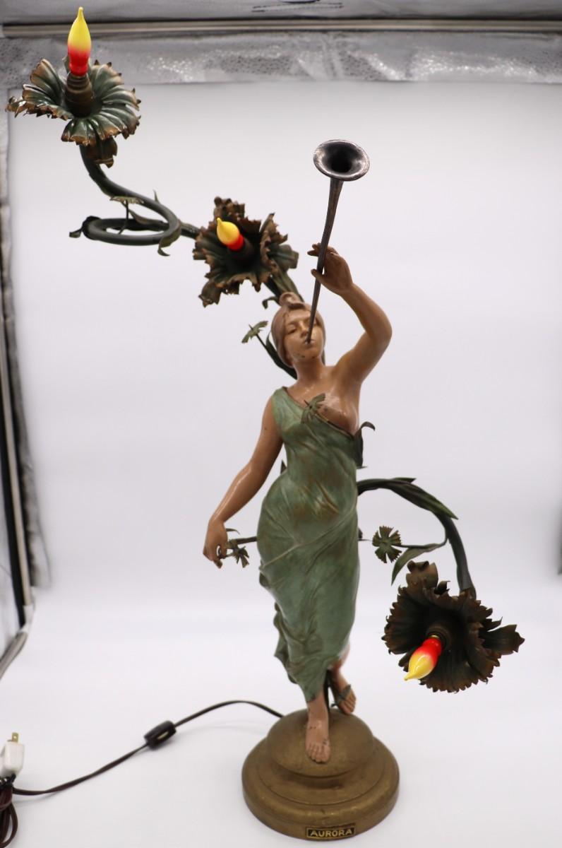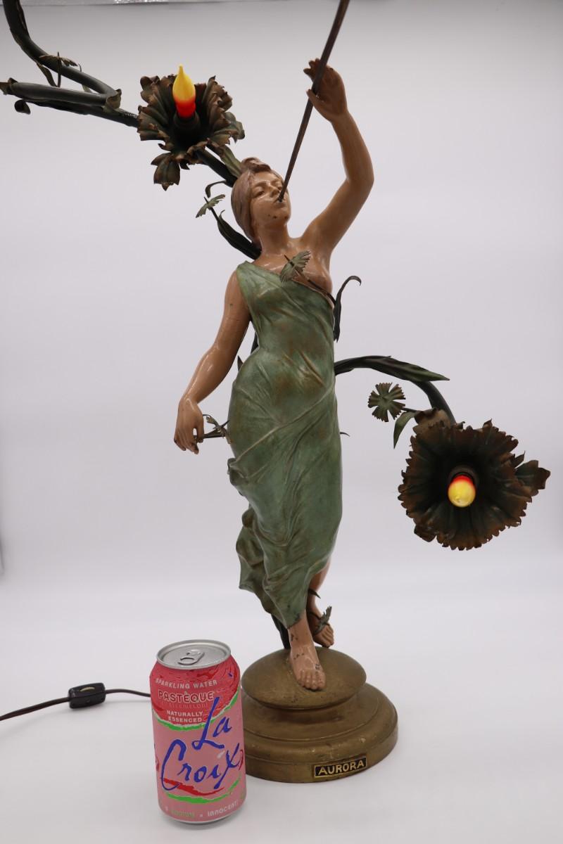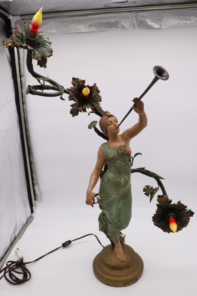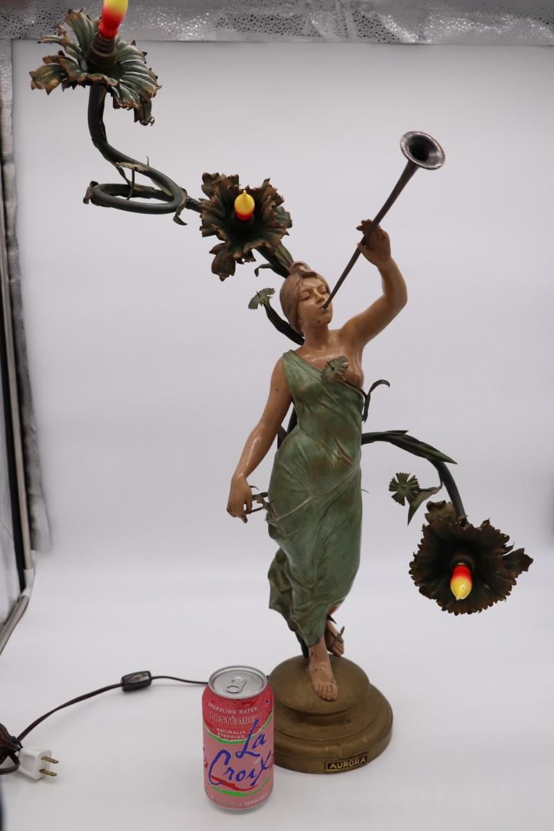 Amazing Aurora Dawn Antique Art Nouveau Sculpture Lamp