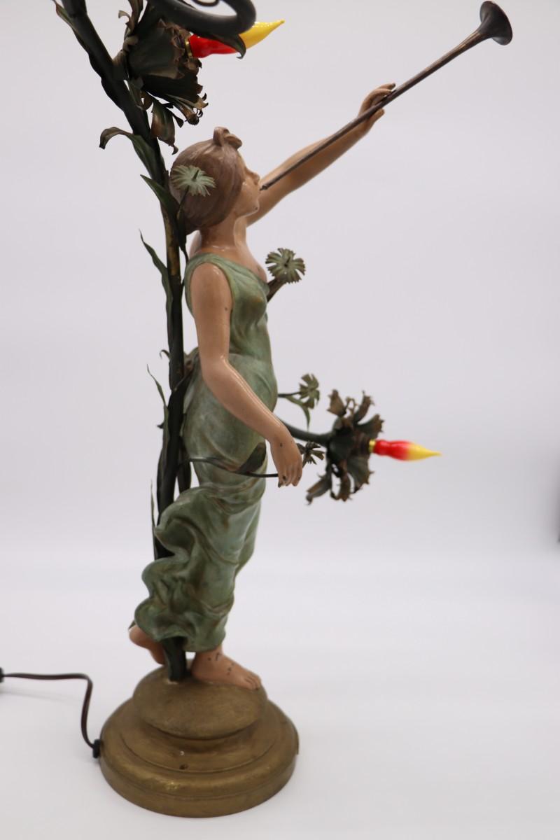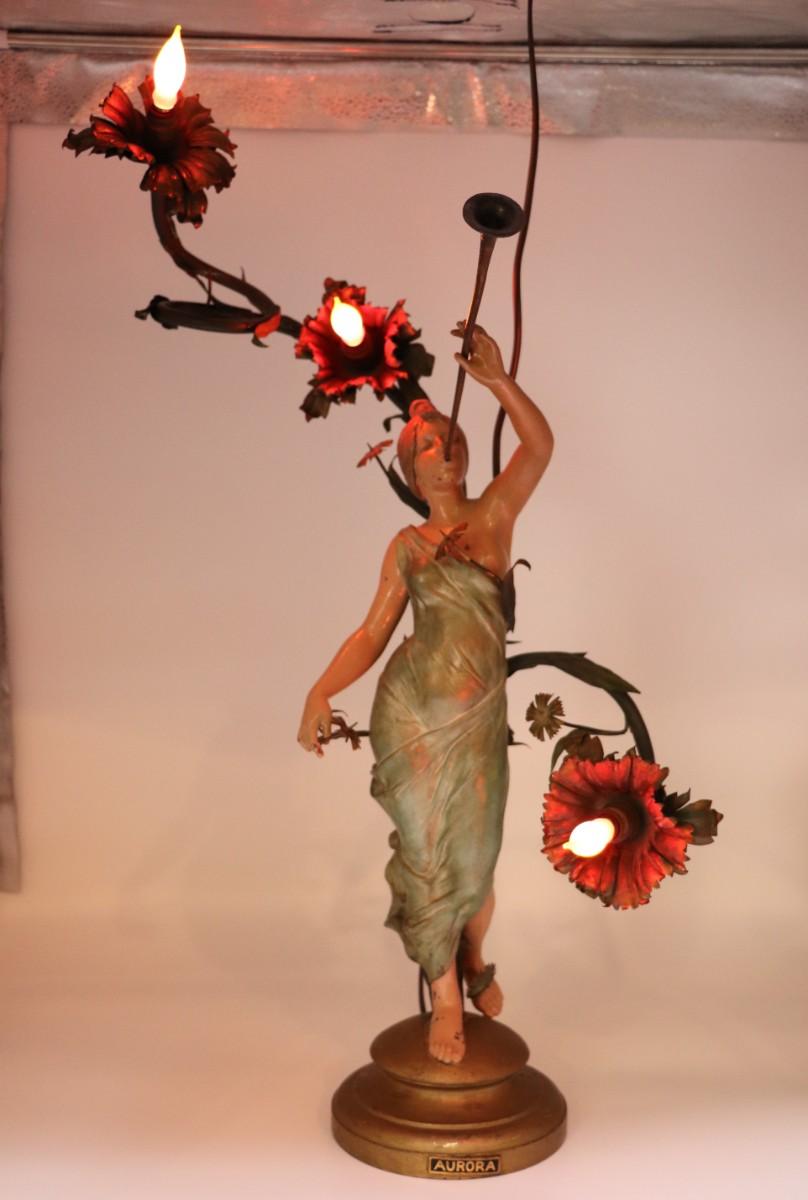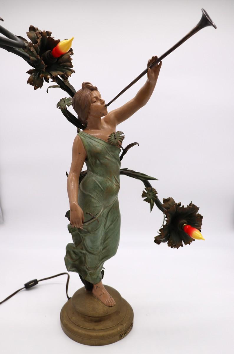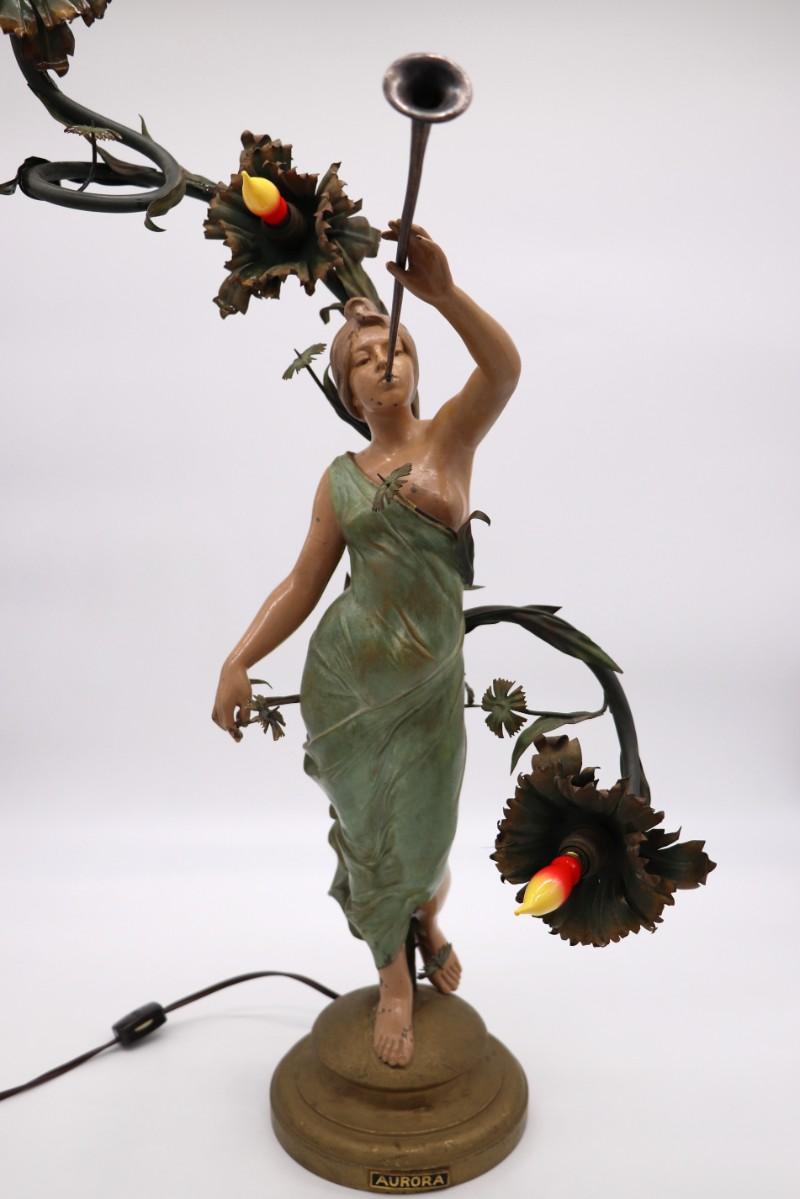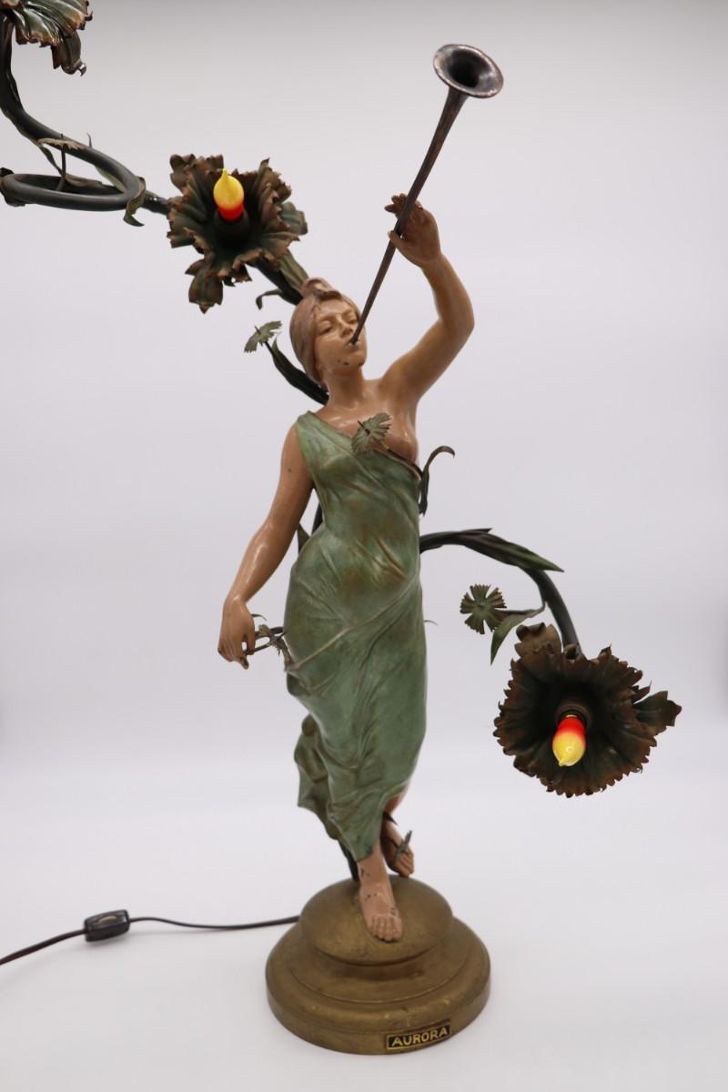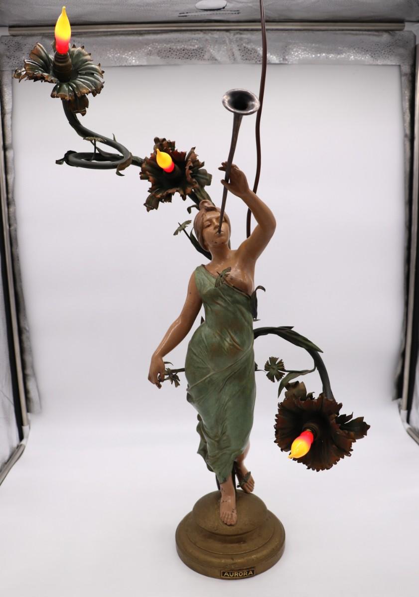 Amazing Aurora Dawn Antique Art Nouveau Sculpture Lamp