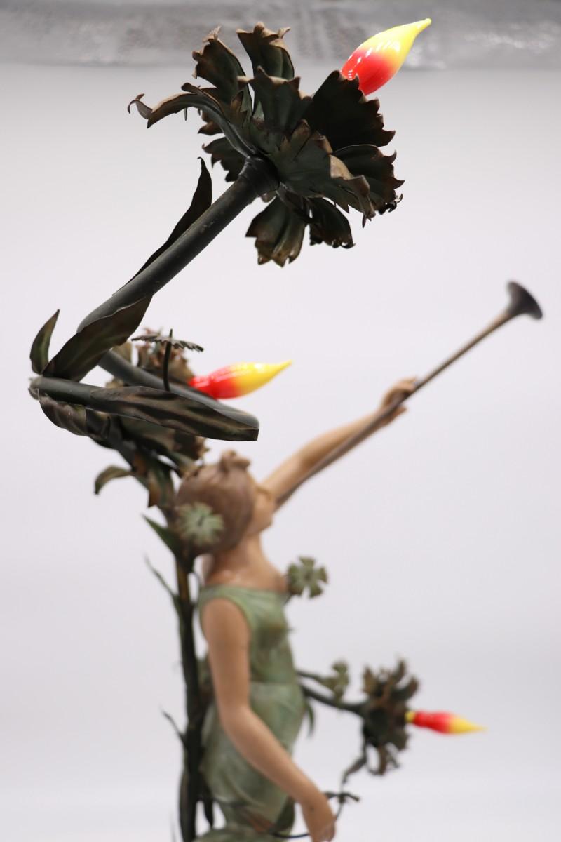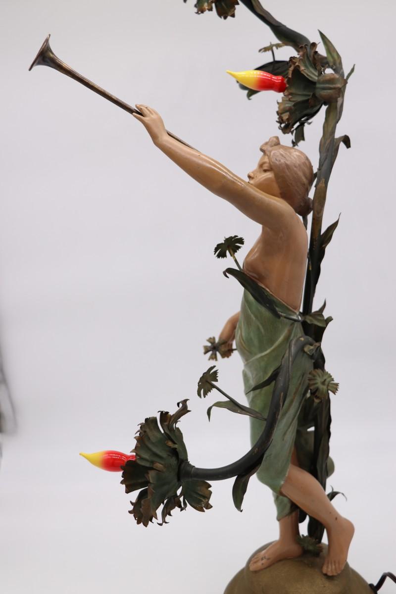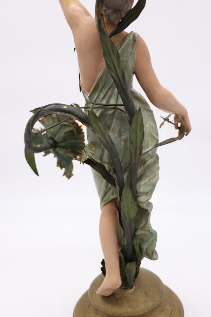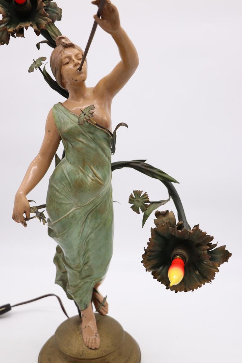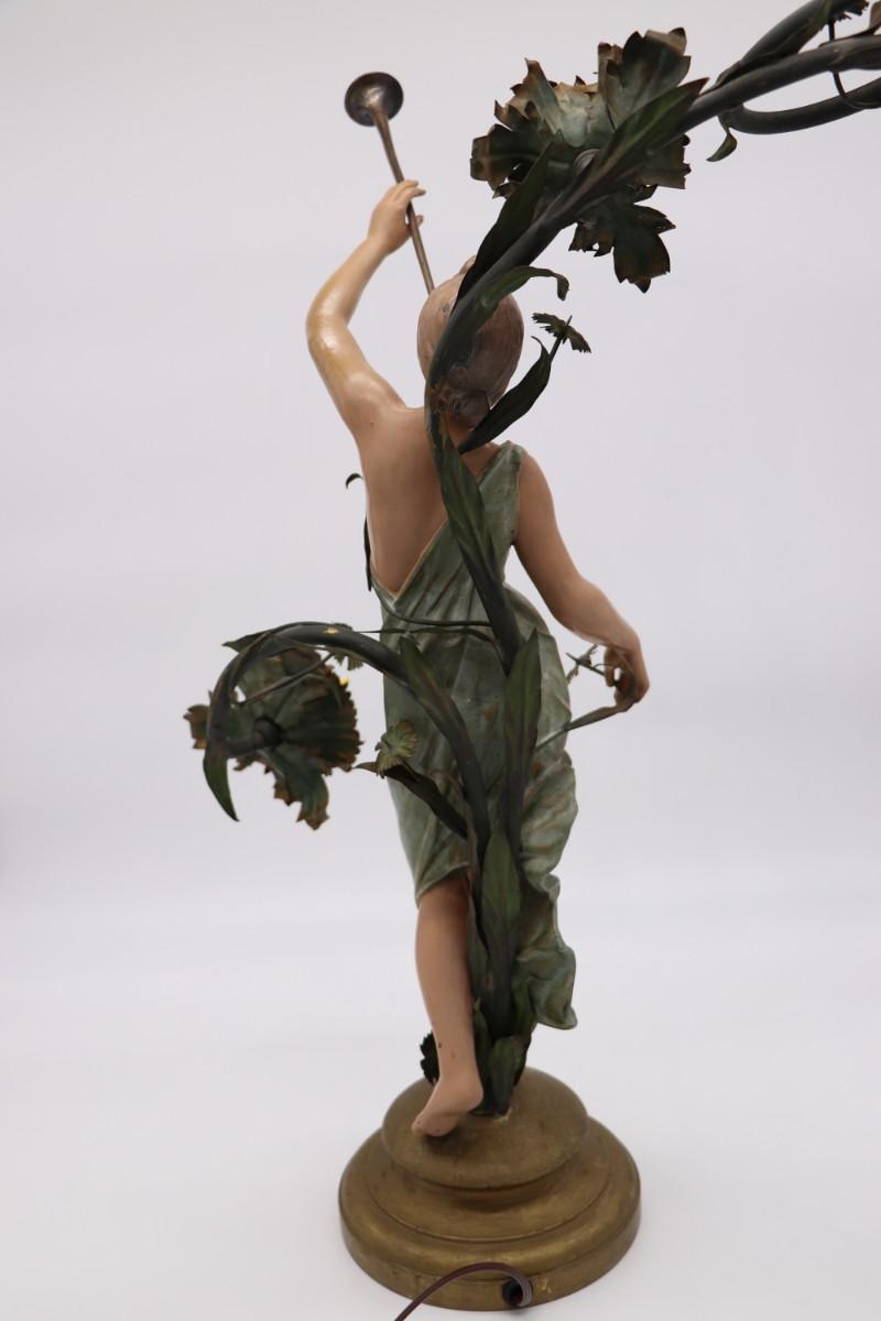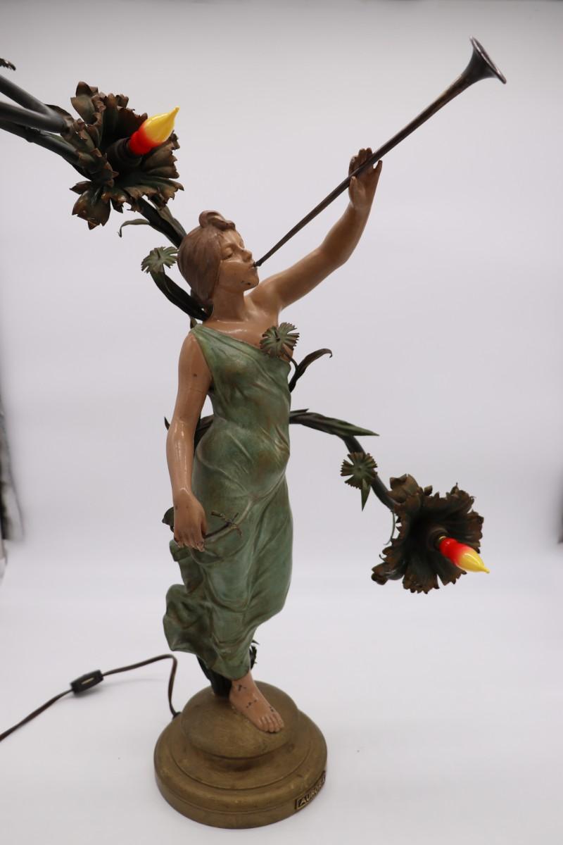 Amazing Aurora Dawn Antique Art Nouveau Sculpture Lamp