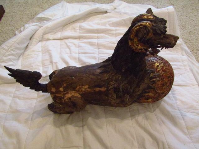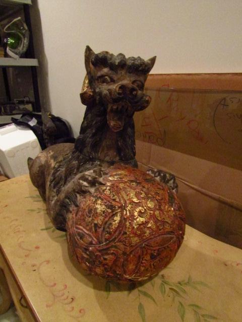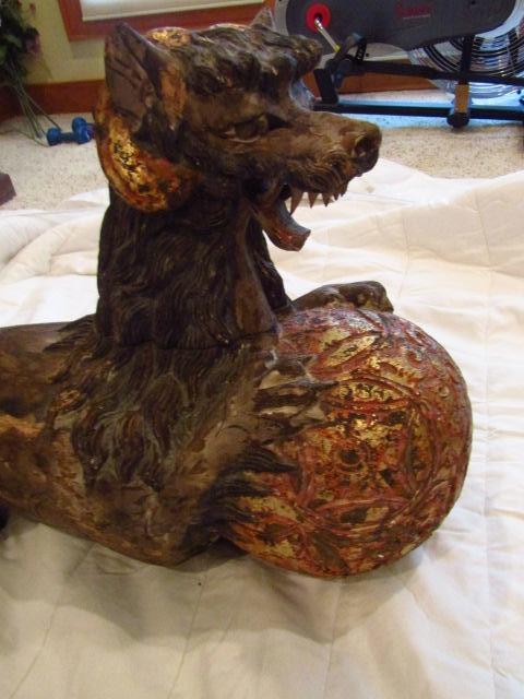 Amazing Hand Carved Wooden Dragon Dog- Please See All Pictures