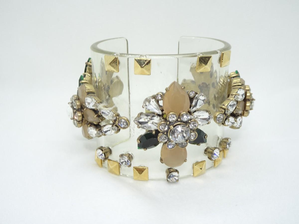 J.CREW Acrylic Cuff Clear Crystal Rhinestone Bracelet