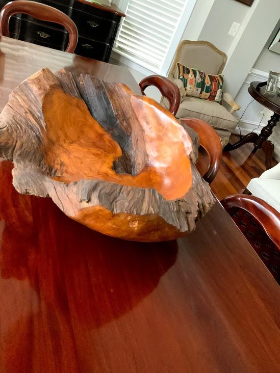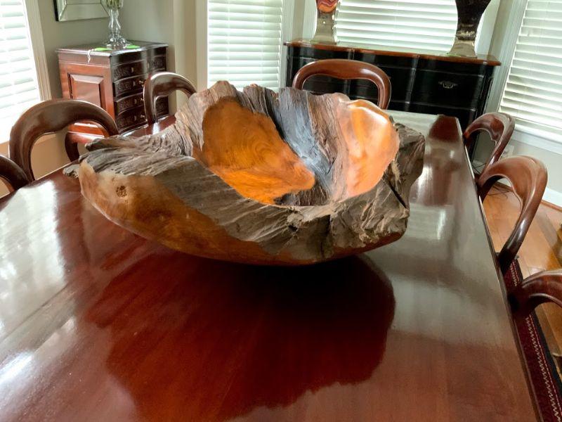This spectacular natural piece of art adds character to any room. It looks incredible from every angle. Huge free form organic wood carved 'bowl'. Beautiful inside and out.