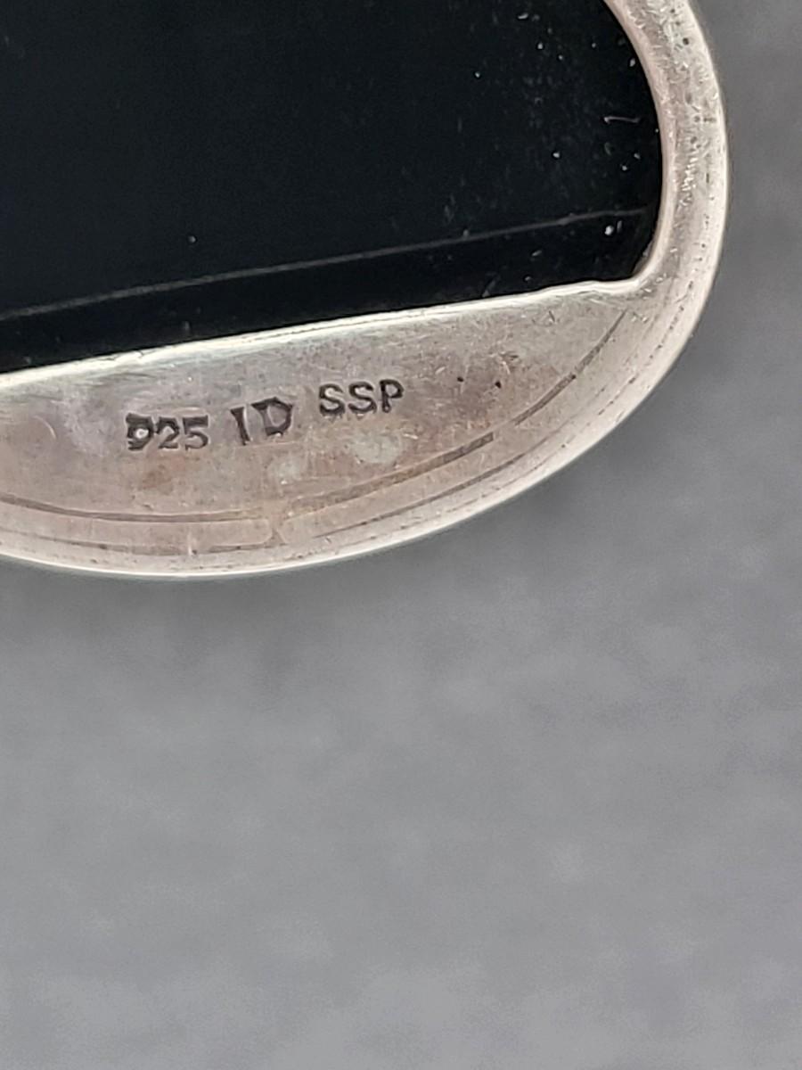 Amazing Large Sterling Silver & Black Onyx Pendant 925 Signed ID SSP