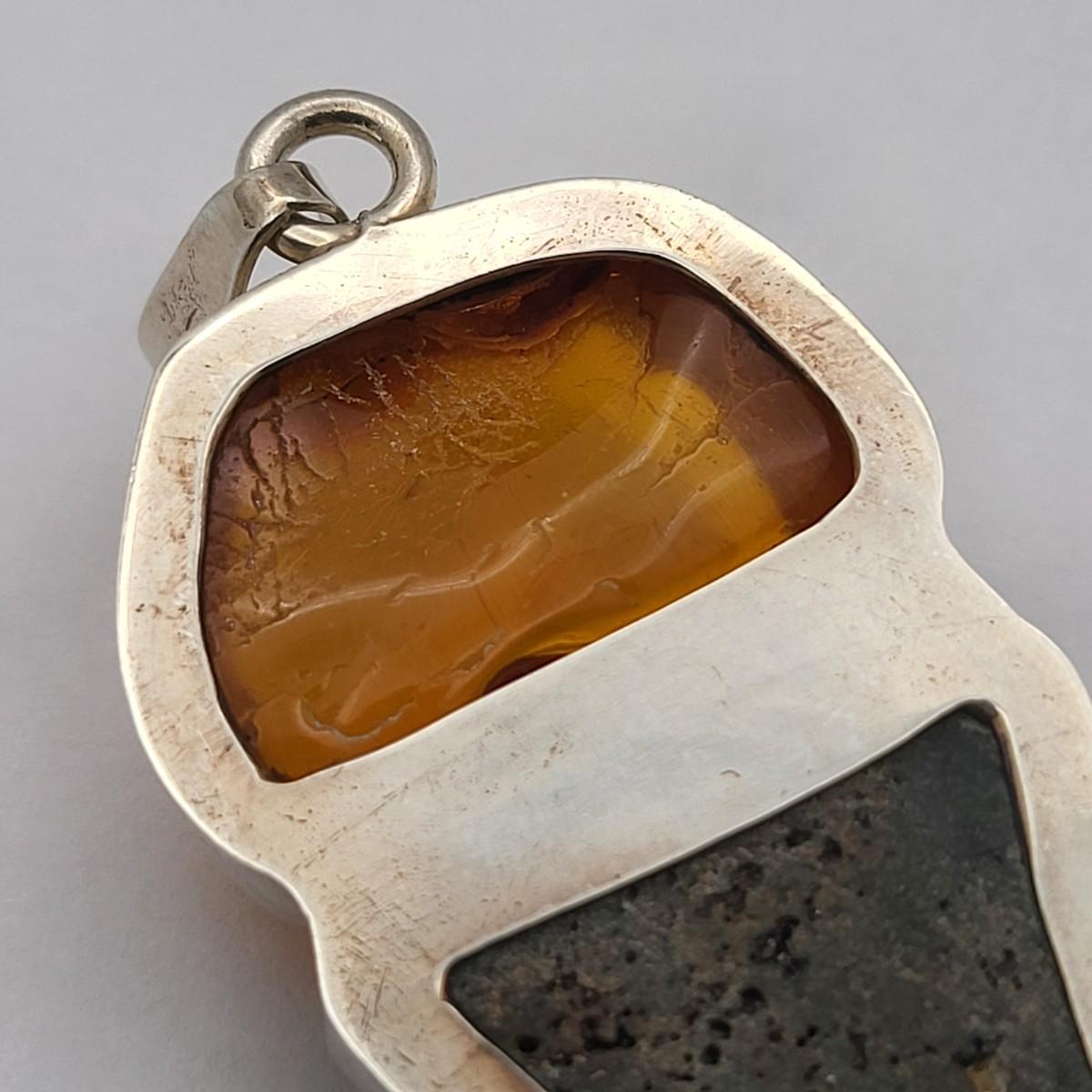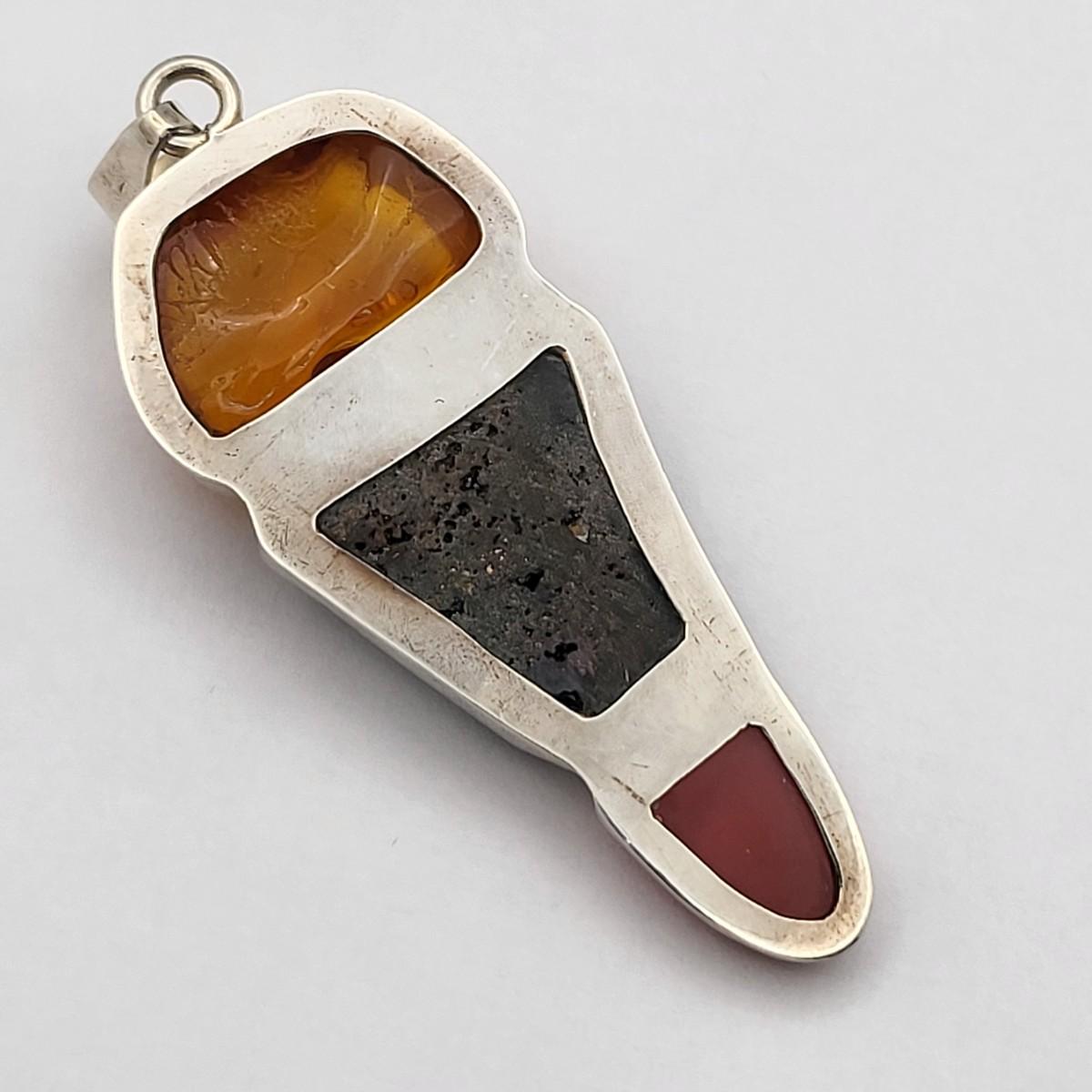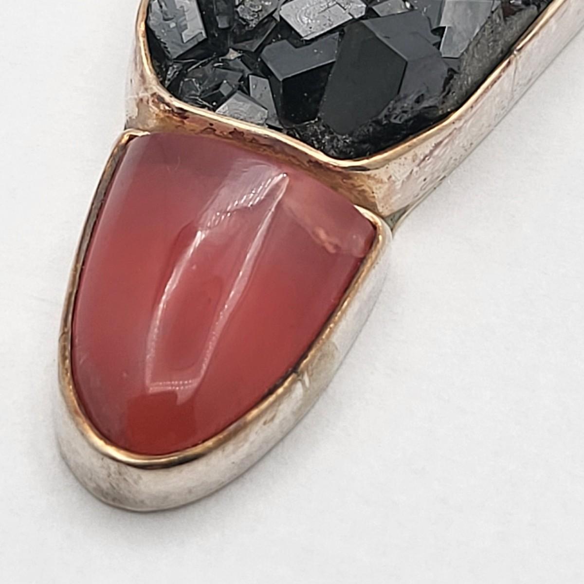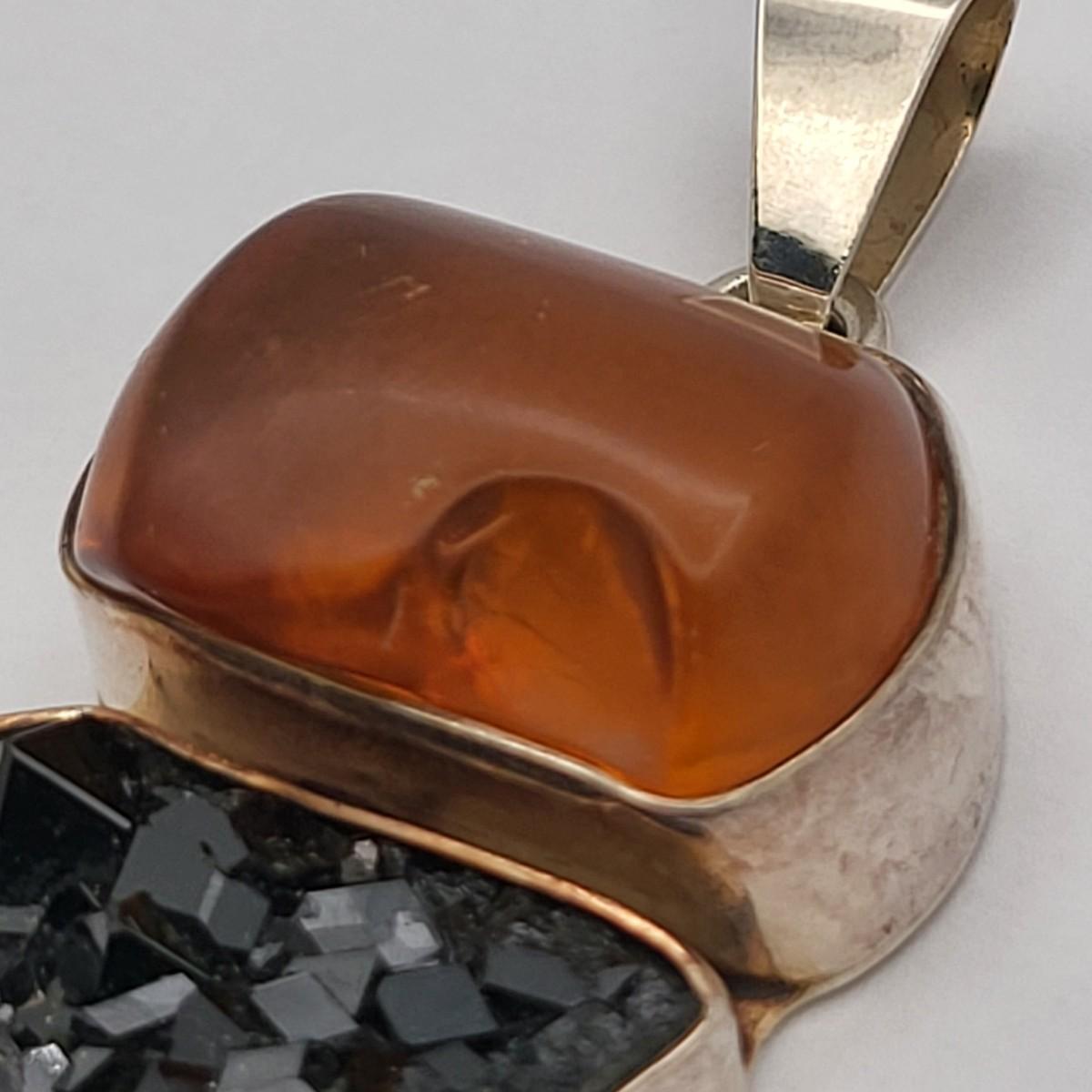 Amber, Black Druzy & Dark Pink Quartz 3.25" long x 1" wide. Nice large bale, ready for your chain. Set in 925 silver. Total weight 32.5 grams.