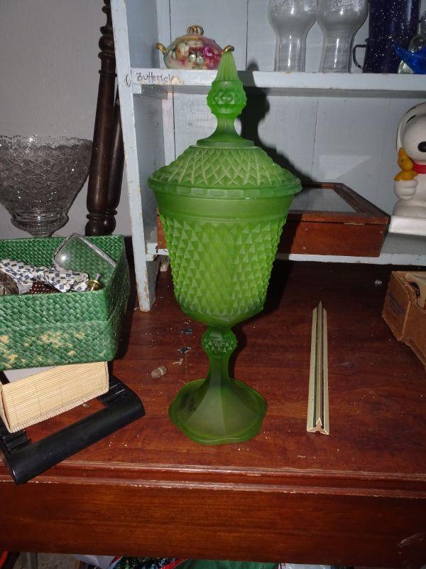 Amazing Lime Green Center Piece Glass Vase Decanter