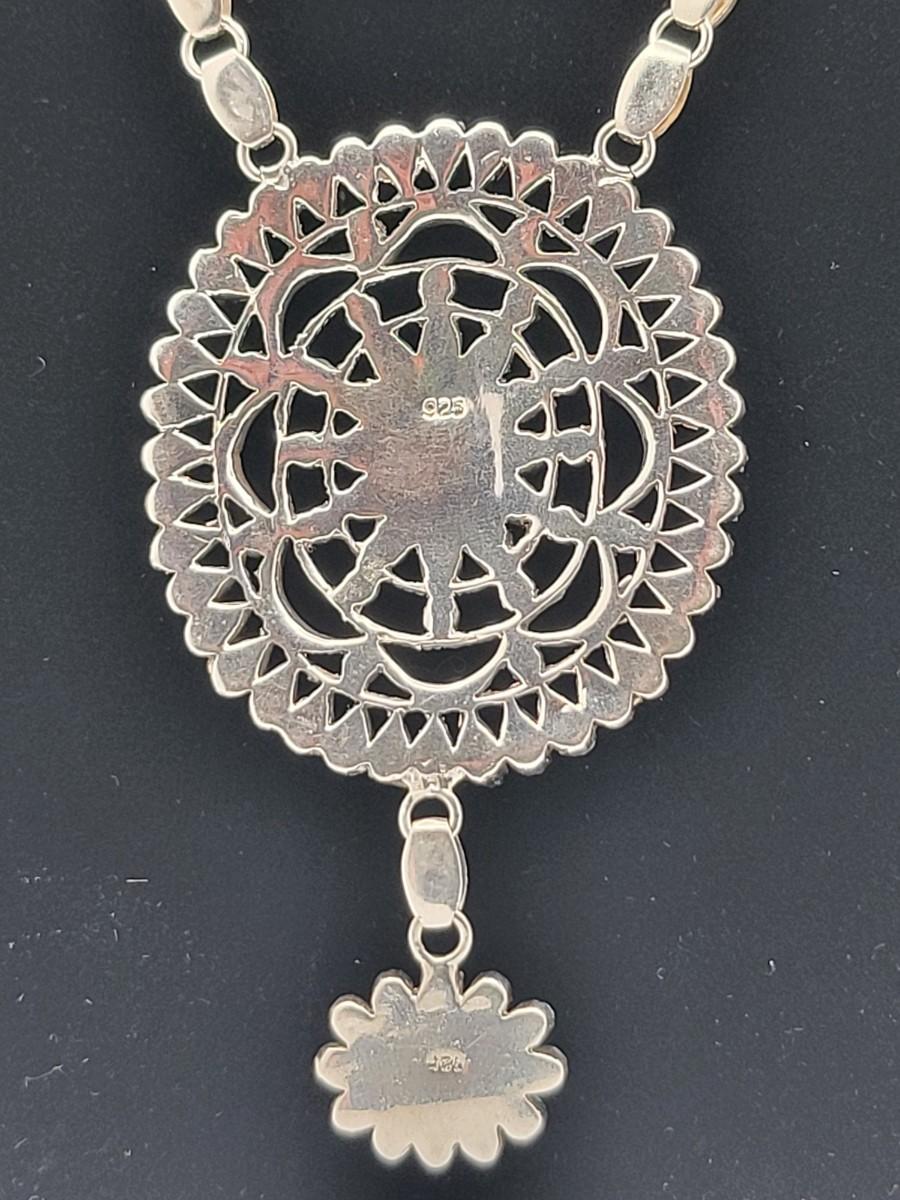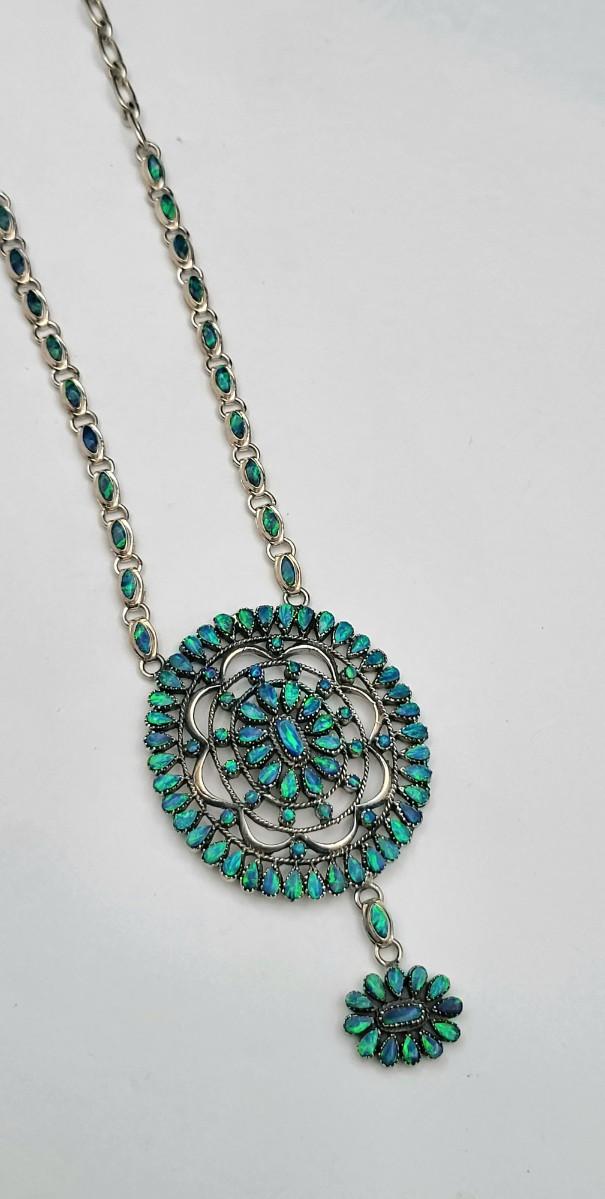 Amazing Detailed Opal Cluster 925 Silver Necklace 55.4gr