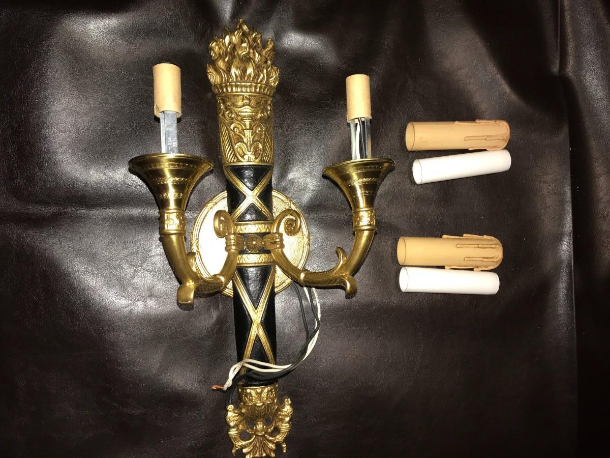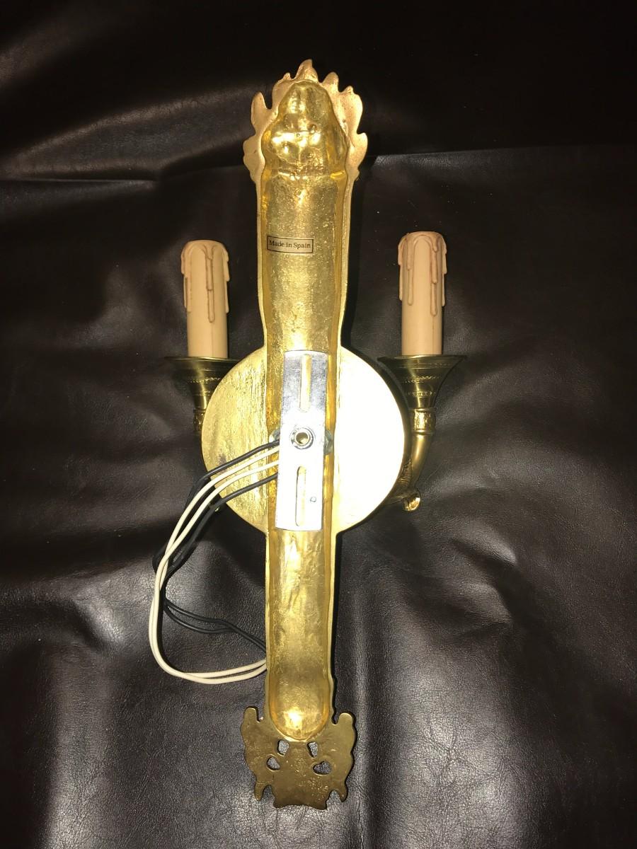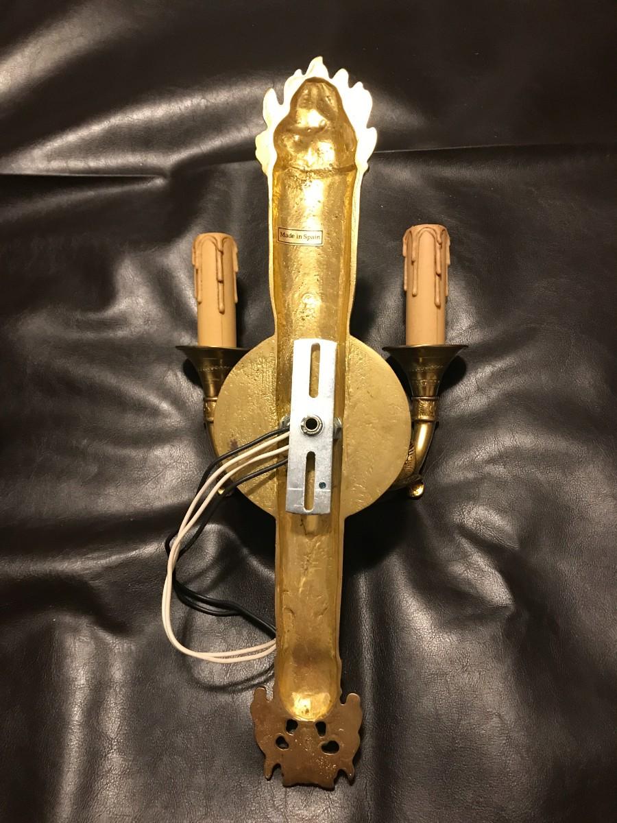 The brass work looks like little torchieres ~ Foyer , dining room , Bedroom ~ you choose ~ this unique set could go in any room ! Relatives actually sent this from Spain .