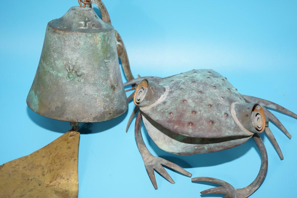 AMAZING SOUNDING BRONZE BELL. COMES WITH TIN FOLK ART MADE FROG