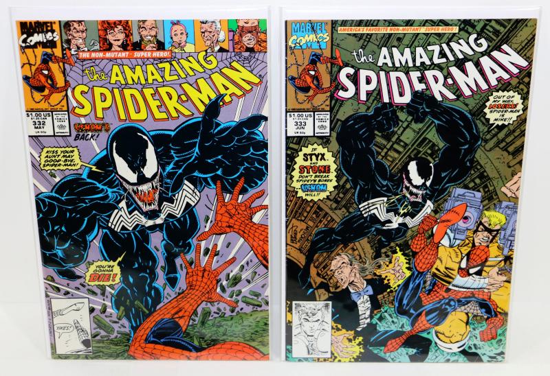 AMAZING SPIDER-MAN #332 #333 VENOM Issues- 2 Marvel Comics Lot #612-32