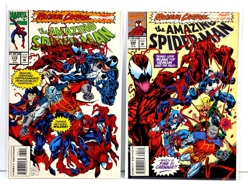 AMAZING SPIDER-MAN #379 #380 Carnage Parts 7 and 11 Marvel Comics 1993 vf/nm