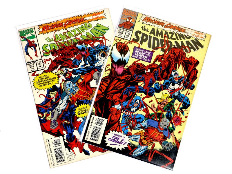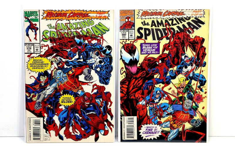 AMAZING SPIDER-MAN #379 #380 Carnage Parts 7 and 11 Marvel Comics 1993 vf/nm