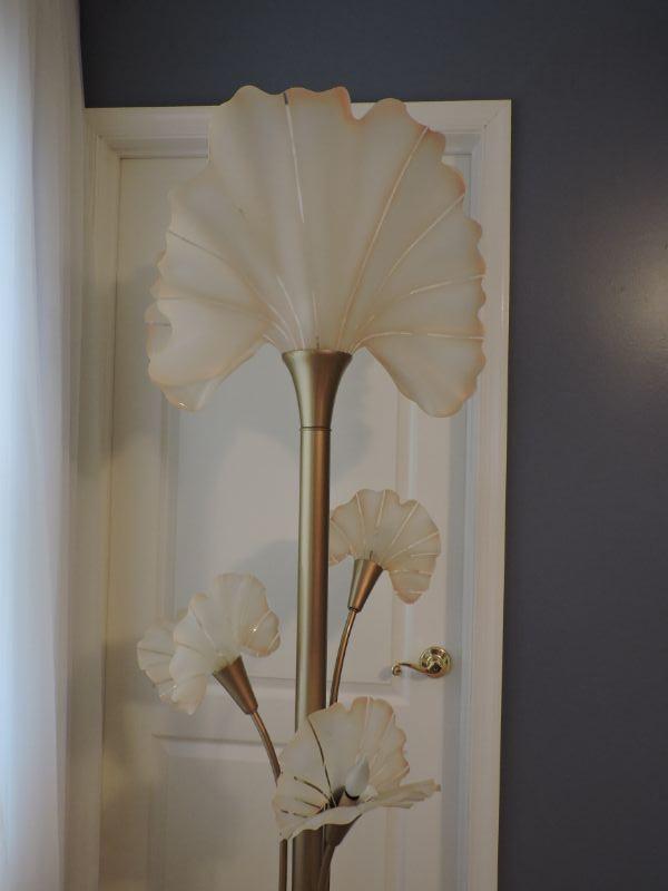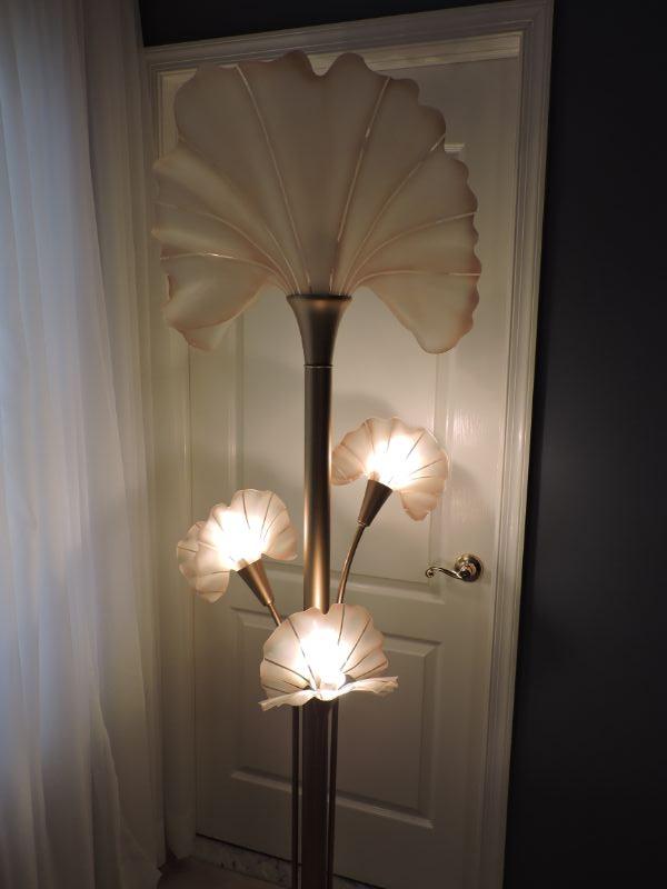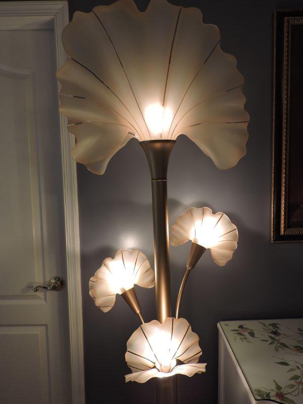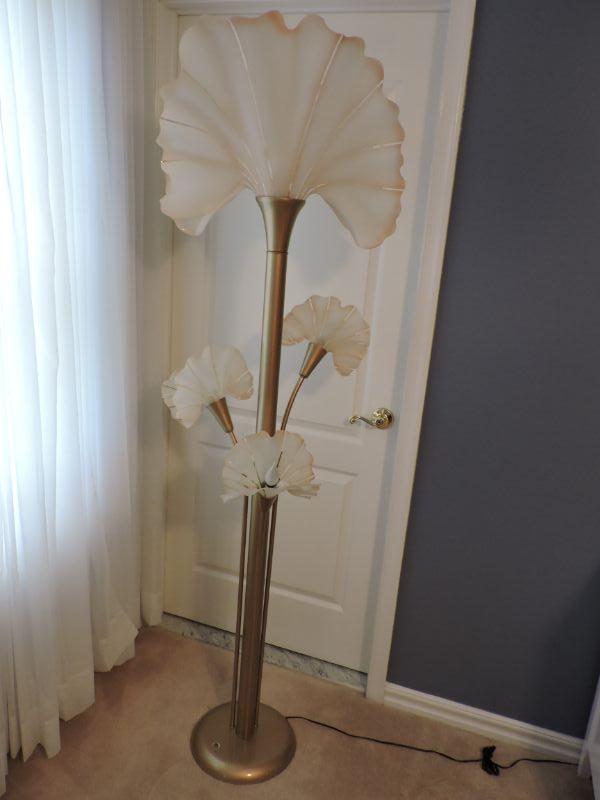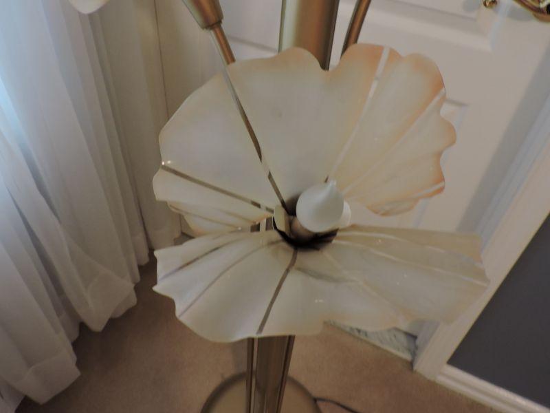 Just an amazing feature lamp! The shades are removable and the lights can be lit in a variety of ways. Just a stunning piece! Stands about 79". **Please read Terms and Conditions before placing a bid. Pick up is Wednesday, September 25 from 4pm to 7pm and Saturday, September 28 from 9am to 1pm in Williamstown, NJ. All sales are final. All sales are as is, where is. Please review all photos. Any props included in photos are not included in listing. All measurements are approximate.