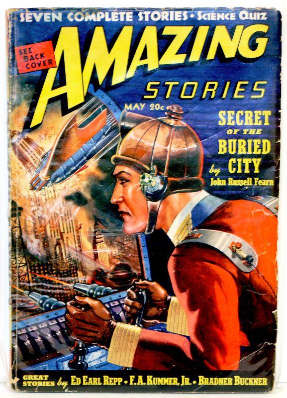 Rare Golden Age Pulp Magazine - Cover illustrates "Secret of the Buried City" by Robert Fugua. "Meet the Authors" contains short profiles of the authors in this issue. Table of contents credits Julian S. Krupa for illustrations not otherwise credited. Magazine show some age wear, good condition, book complete and intact.