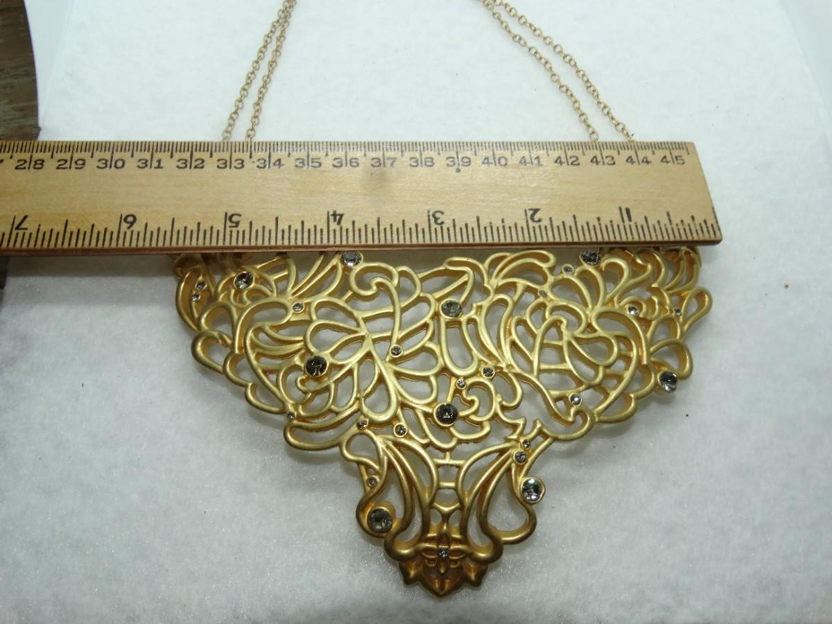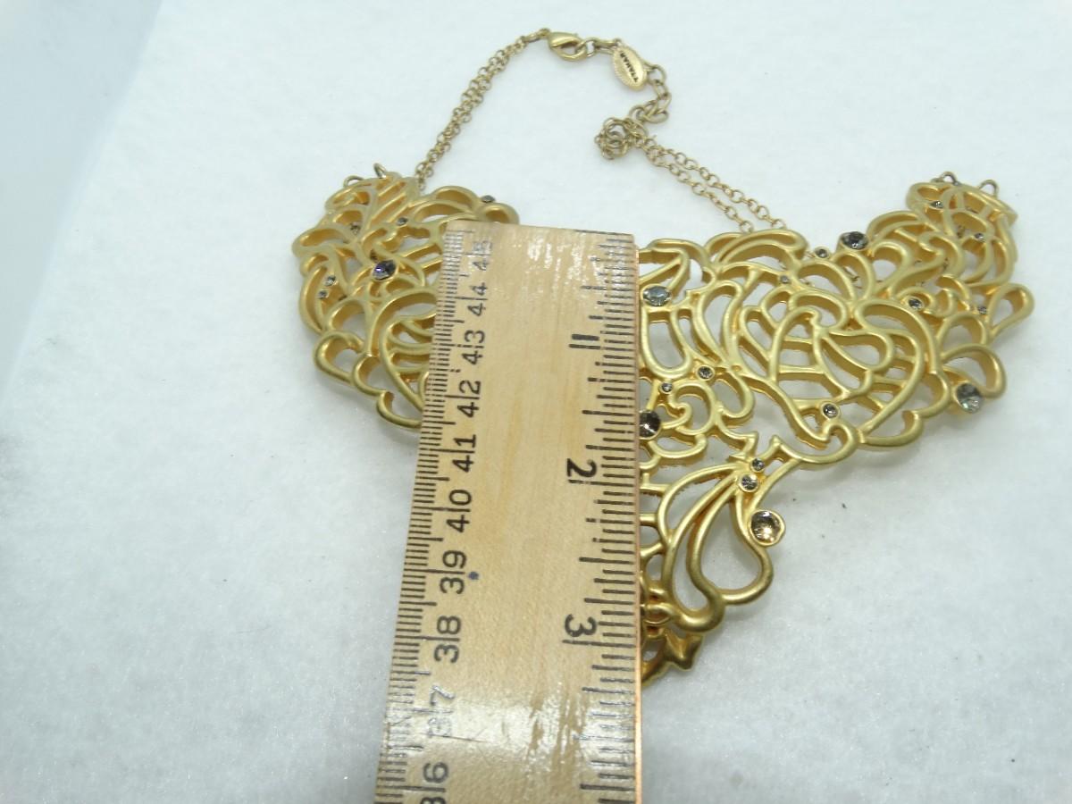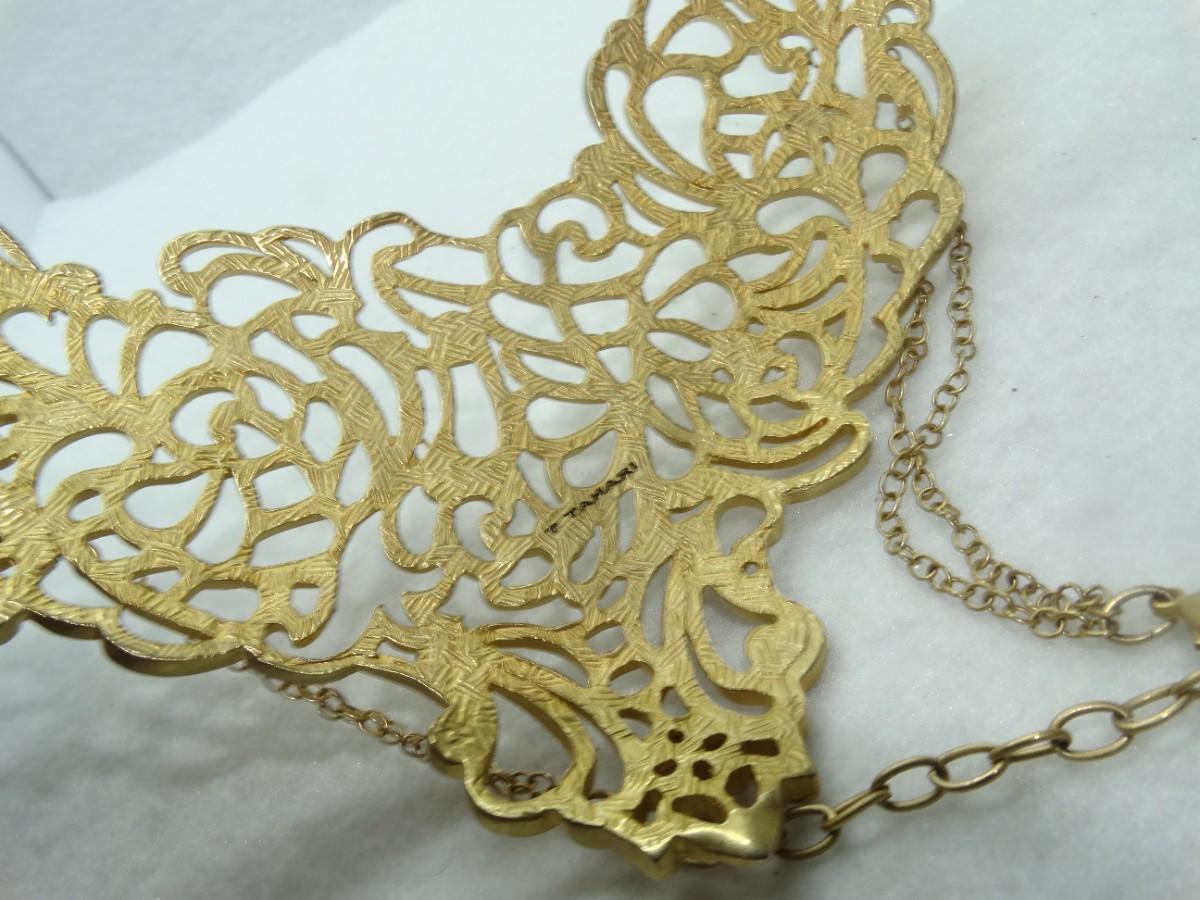 AMAZING T. TAHARI STATEMENT NECKLACE, Gold Tone Rhinestone, Signed