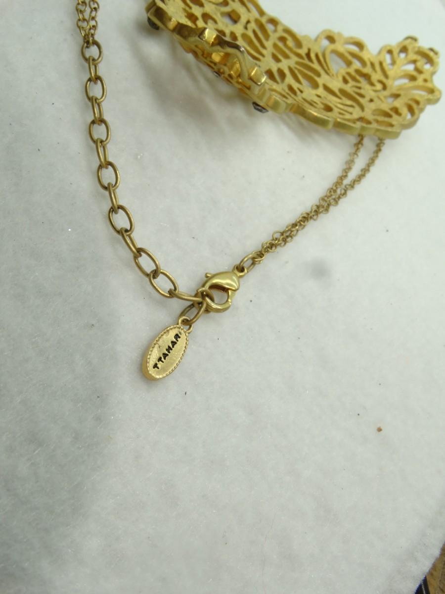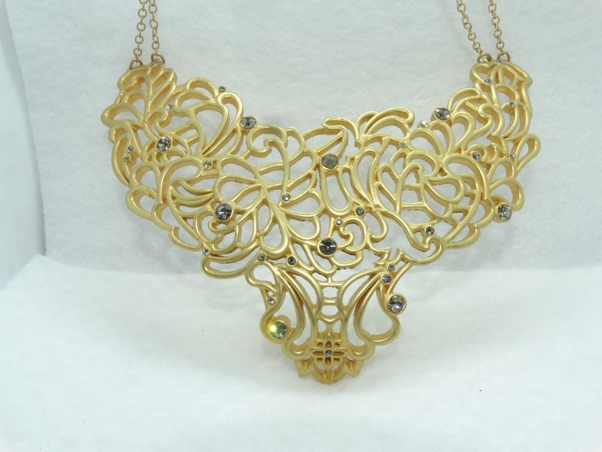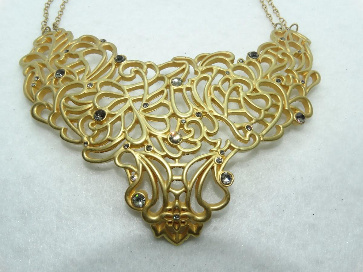 AMAZING T. TAHARI STATEMENT NECKLACE, Gold Tone Rhinestone, Signed