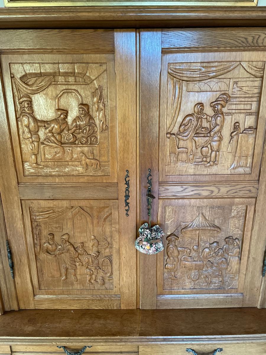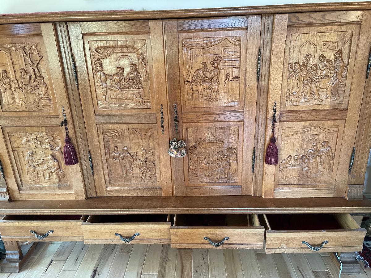 Amazing vintage/antique German hand carved front hutch with 4 drawers