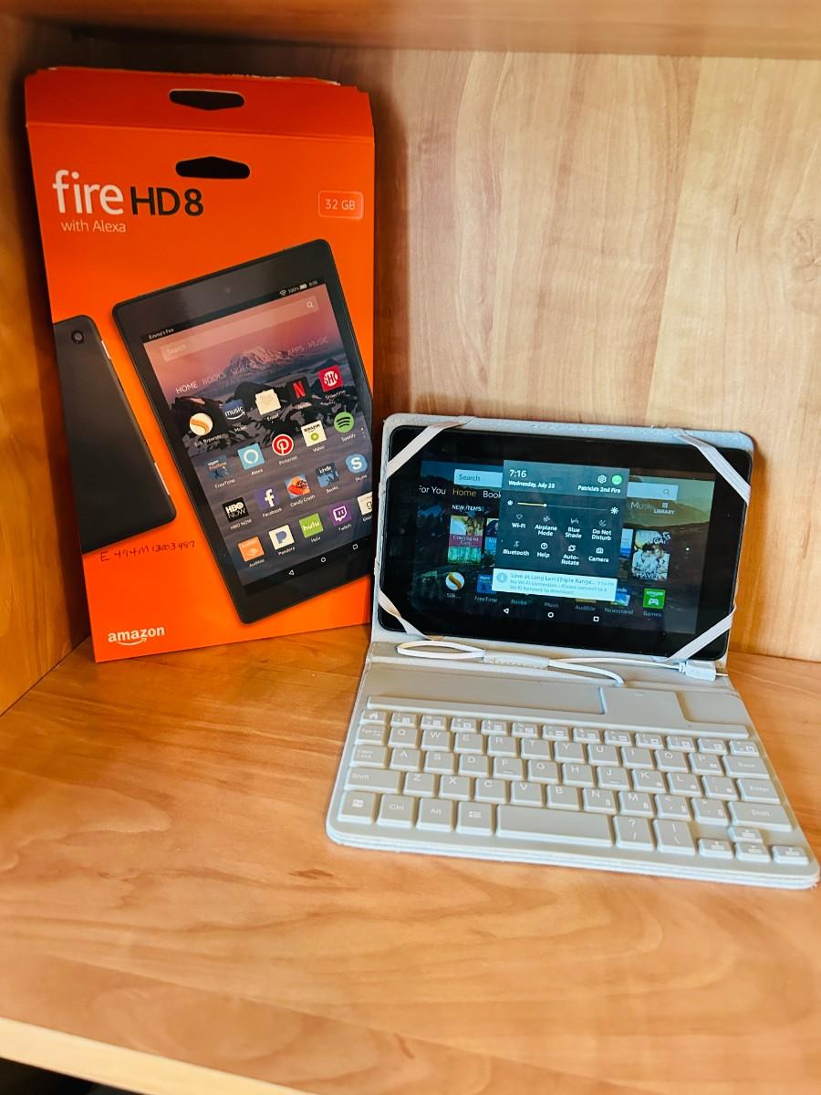 AMAZON 32GB FIRE HD 8 TABLET WITH ALEXA AND BONUS KEYBOARD CASE