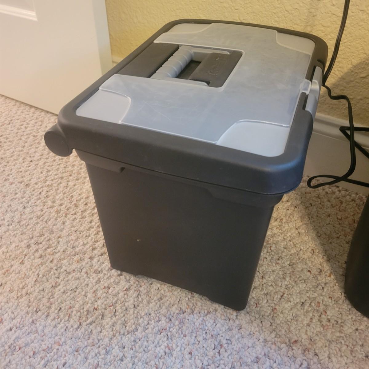 Amazon Basics Paper Shredder and a Sterilite Filing Box (O-DW)