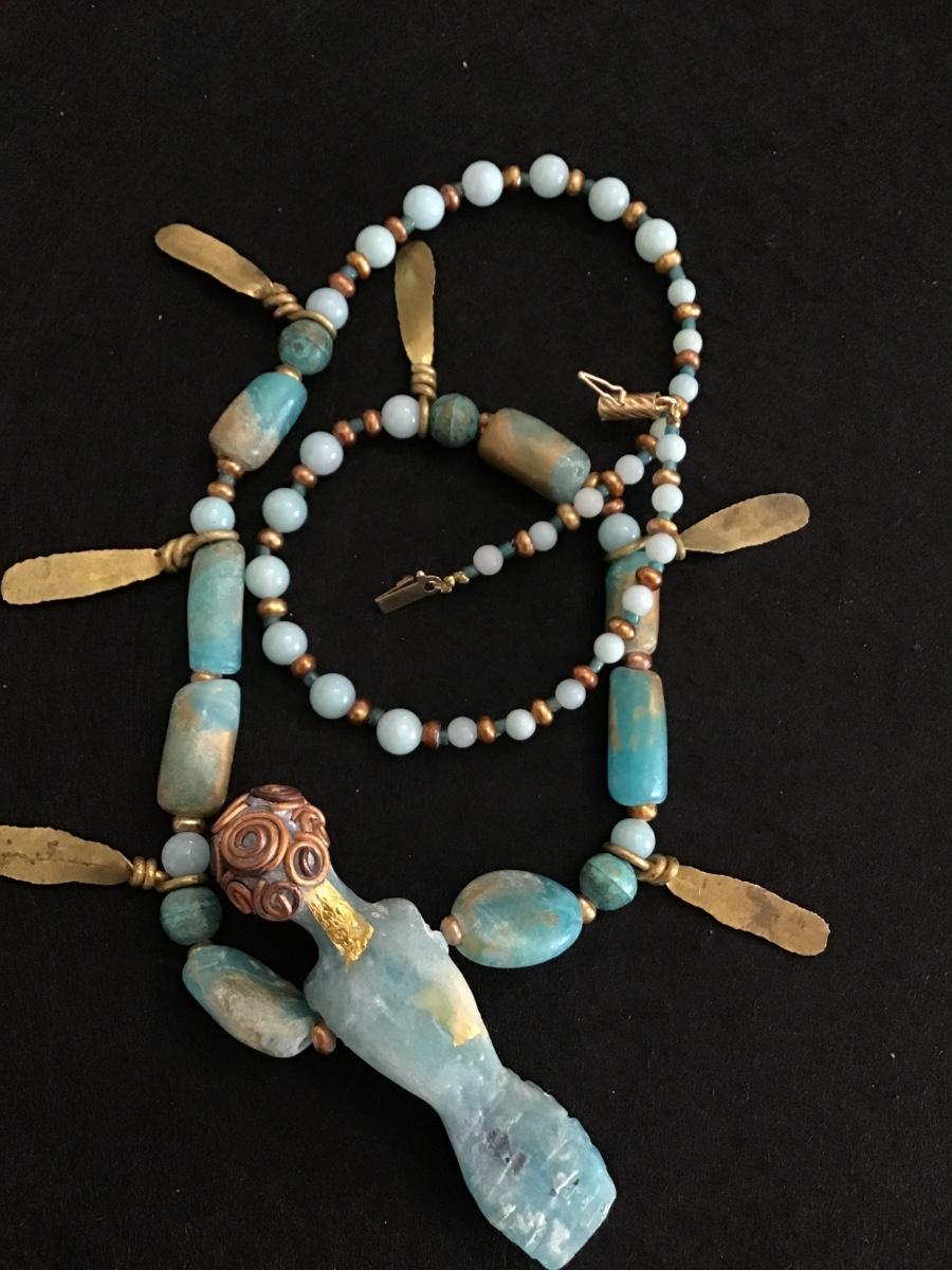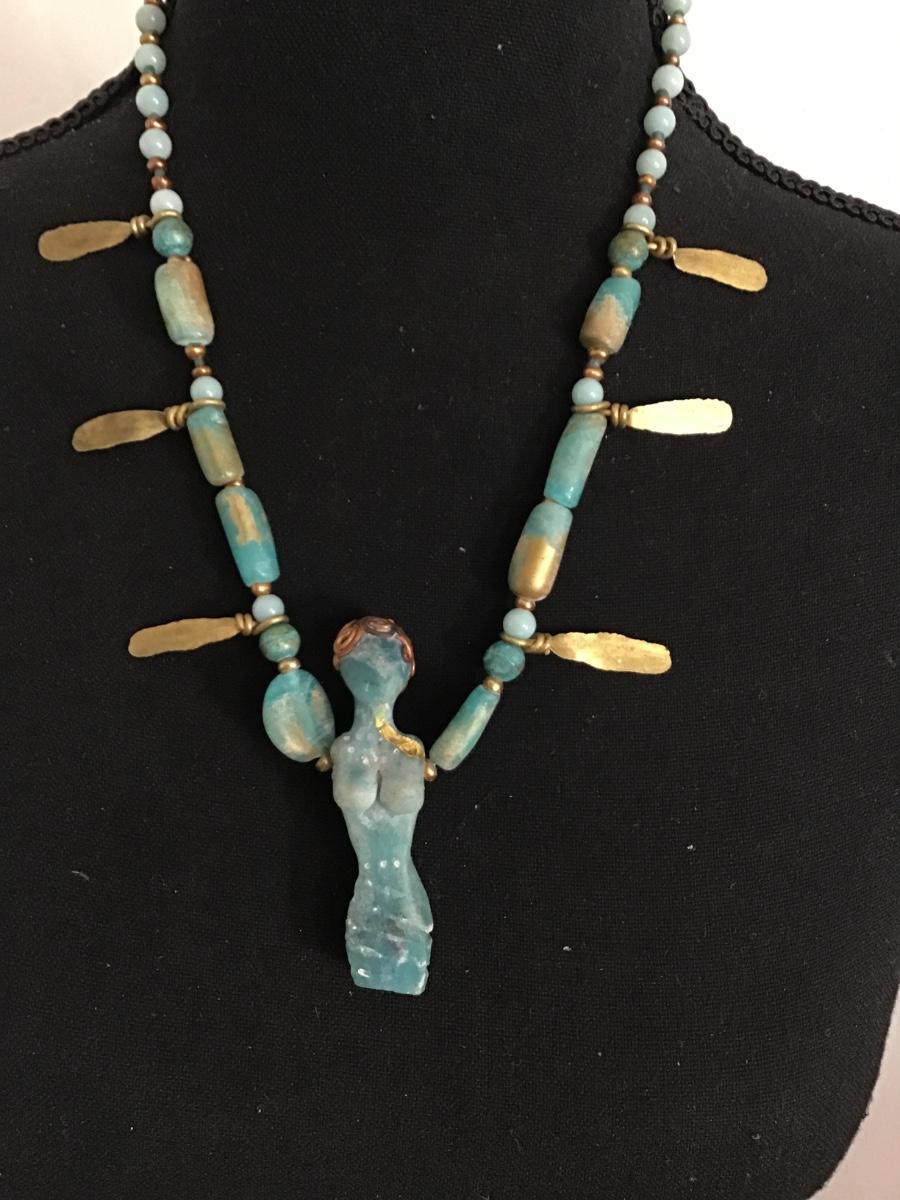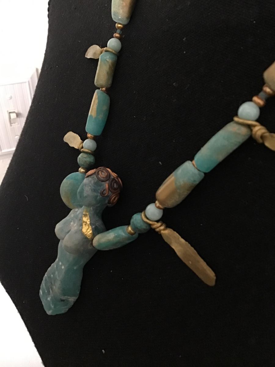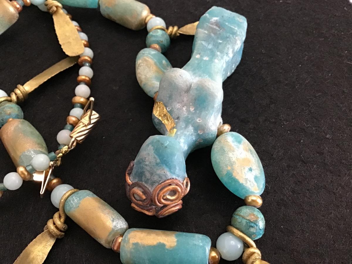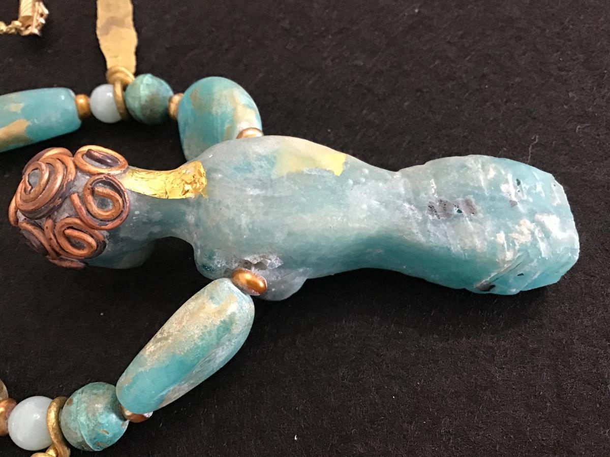 Amazon Jade 14 KT Gold Clasp Unique Hand Carved